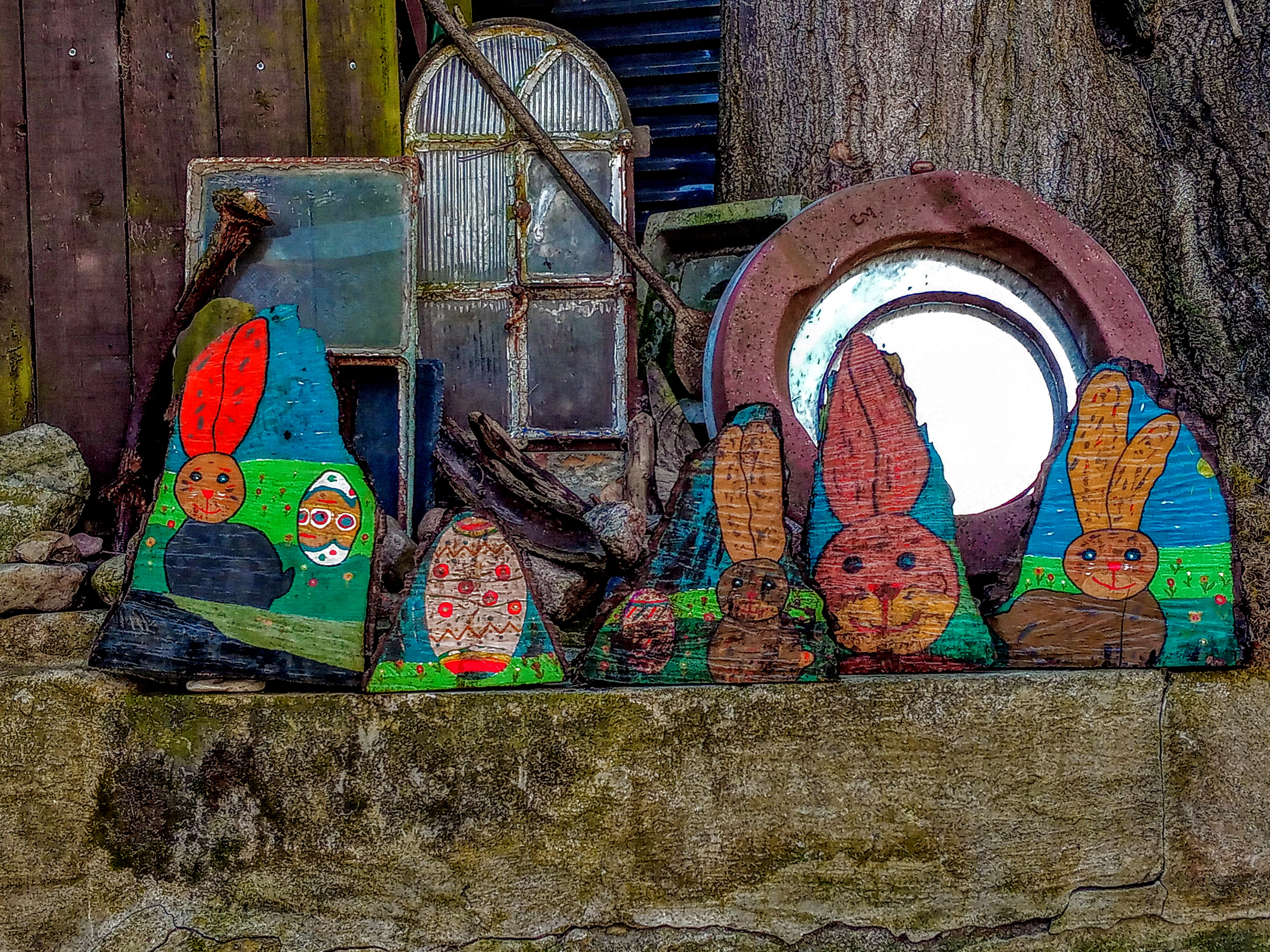 Der mittlere stand schon fast zwei Jahre versteckt im Vorgarten herum und ist deshalb etwas sehr verwittert.