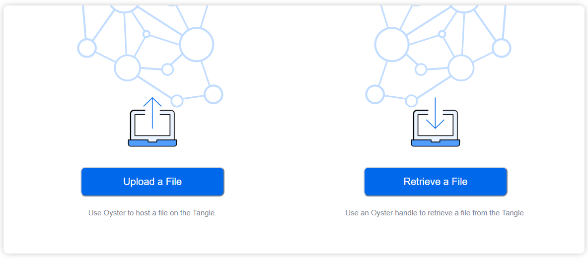 Oyster Storage lets the end user upload & download files on the IOTA tangle. The uploaded file is split into parts and encrypted locally in the browser. This isolation ensures the impossibility of a malicious actor retrieving the data since it can only be accessed with the corresponding encryption key, which is known as the Oyster Handle.