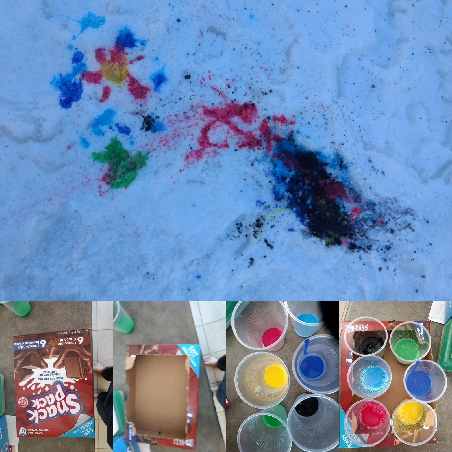 So while my oldest son was in school I took the younger to do some sensory play in the back yard. We had so much fun doing snow paint that we will have to do it again really soon maybe even the older kids would enjoy a carefree time as well.