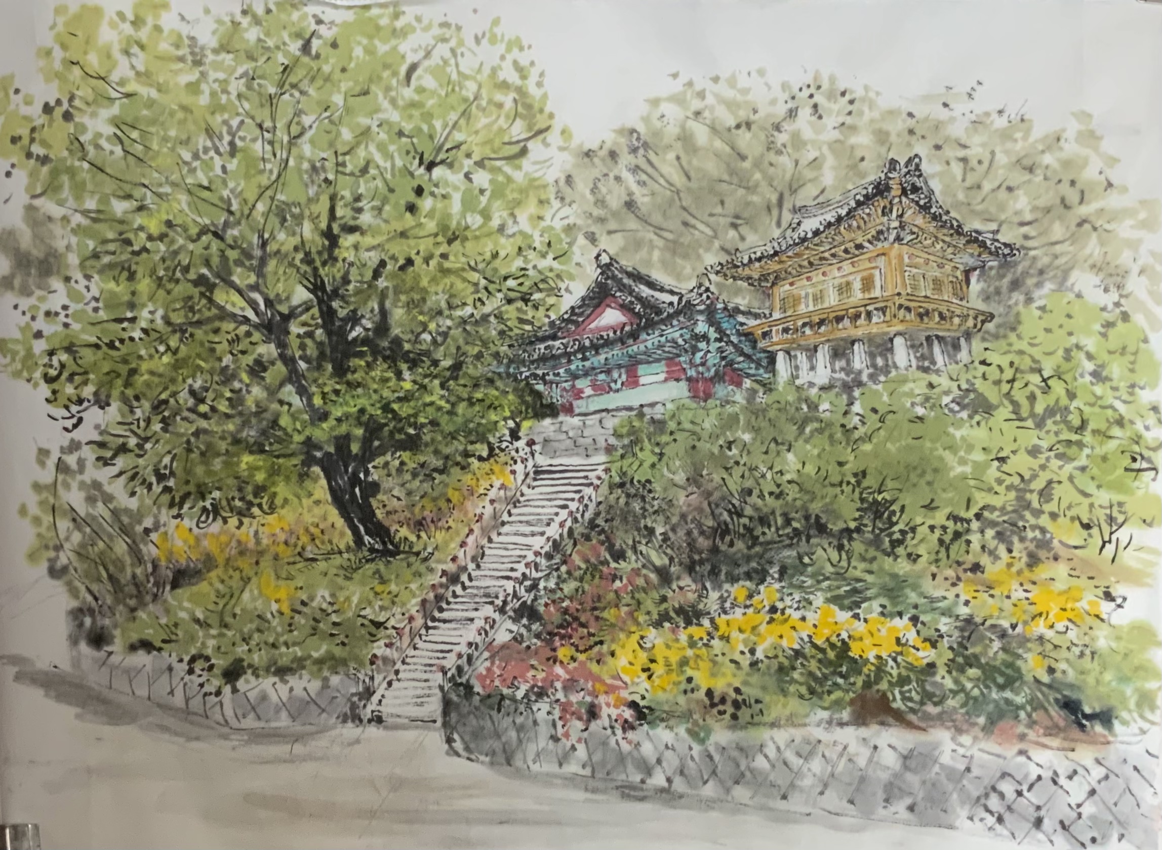 풍경veronicalee (86)in #painting • 5 years ago 절 입구 우람한 수목 이 더위에 지친 심신을 시원한 그늘로 달래준다. 여름 청계사를 그리다. #mini #steemit #photography #diary #art
