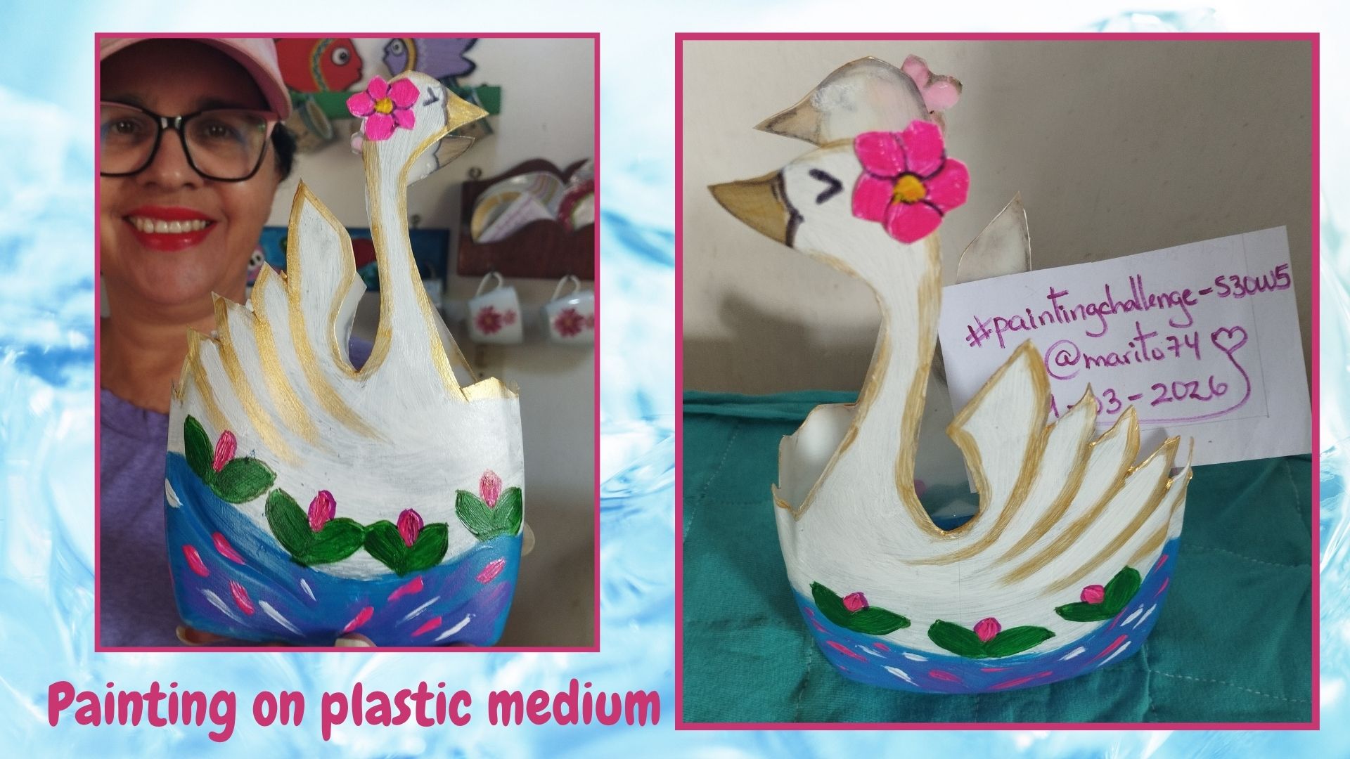 Hola amigos, me encantan los retos creativos, por ello inicio mi participación esta semana en el desafío de pintura sobre plástico liderado por @sualeha, la idea es transformar piezas o crear nuevas y darles vida útil gracias a la pintura, así que pensé en transformar una vieja botella plástica y pintar unos cisnes, la idea no es nueva, hay muchos modelos en internet.