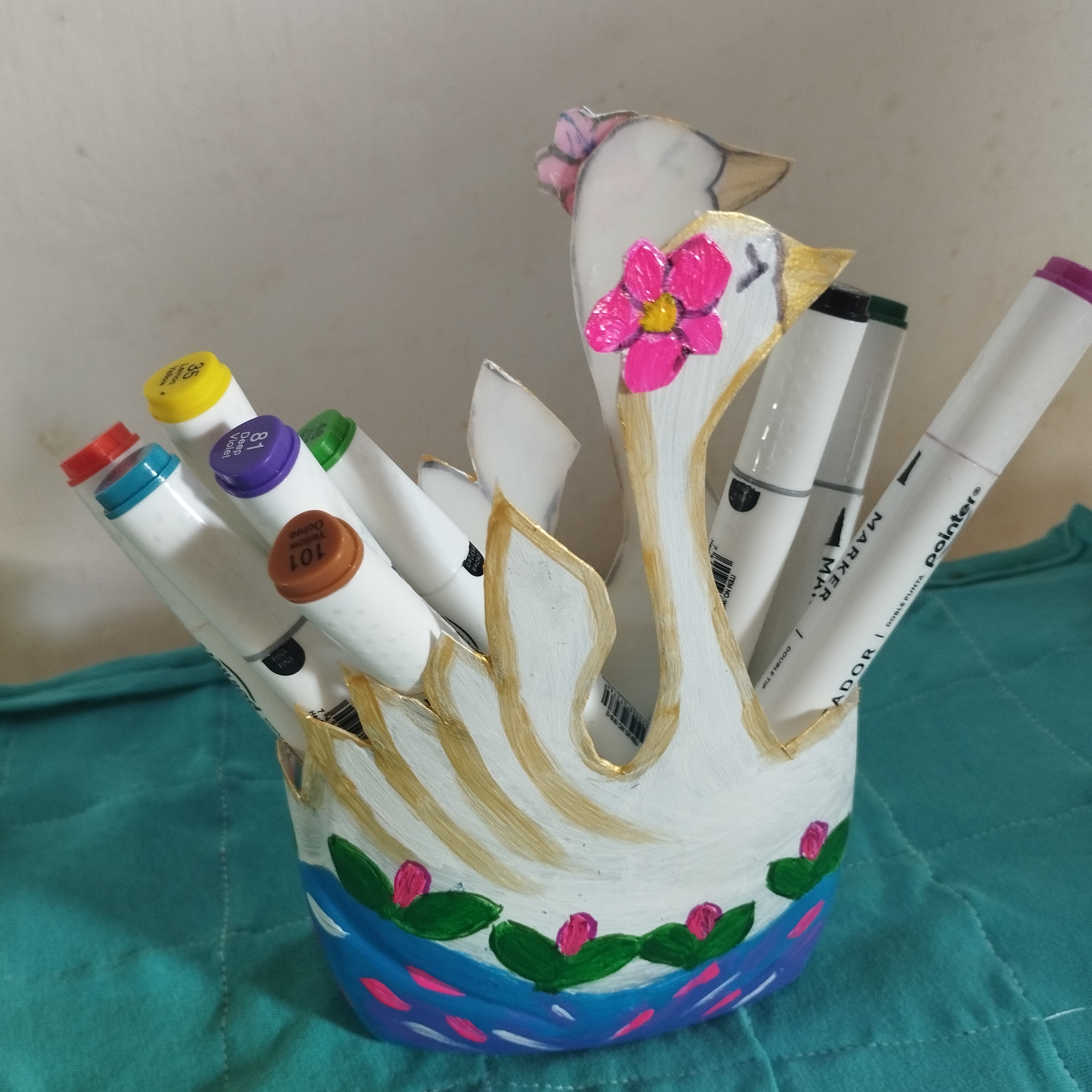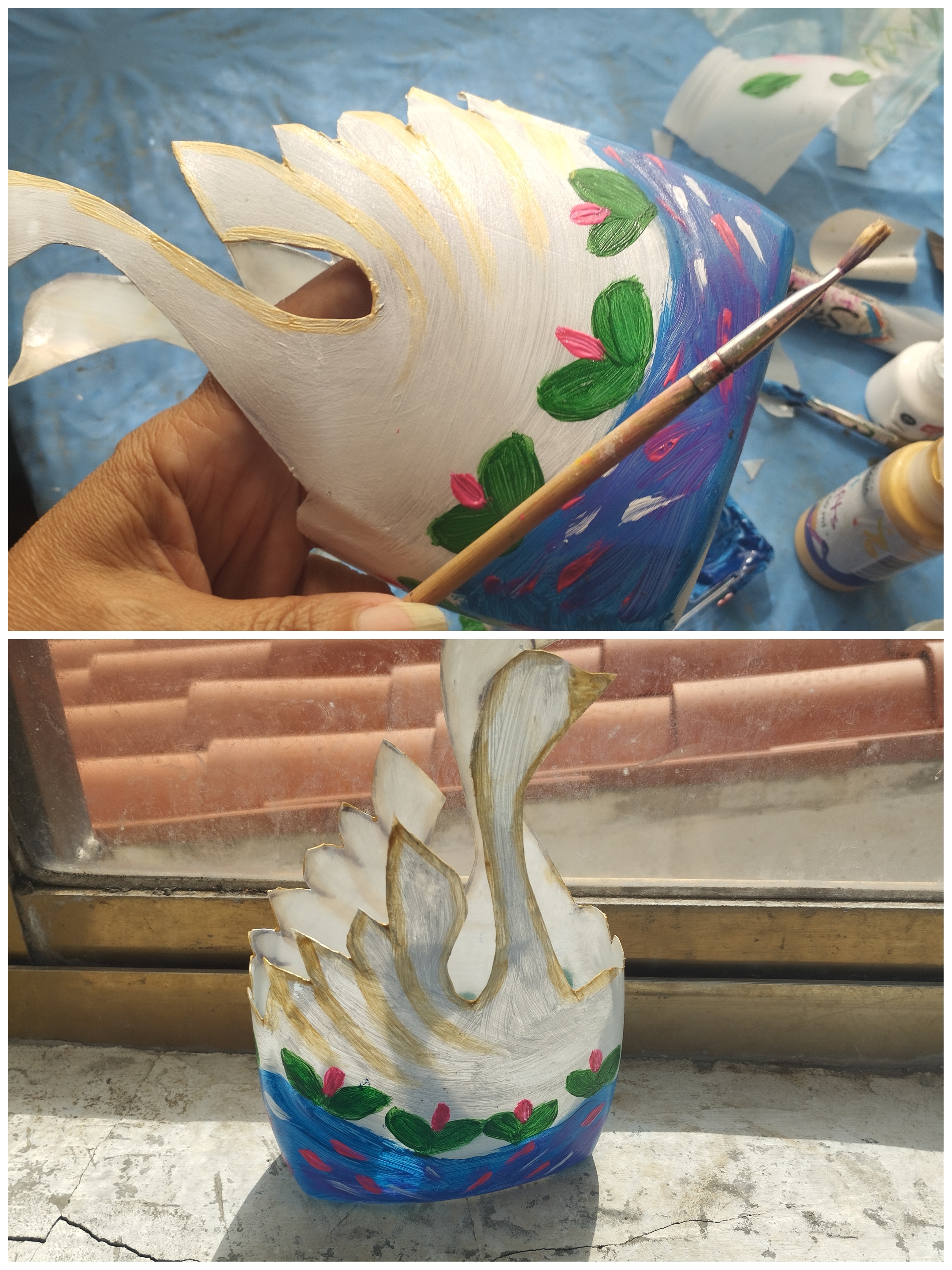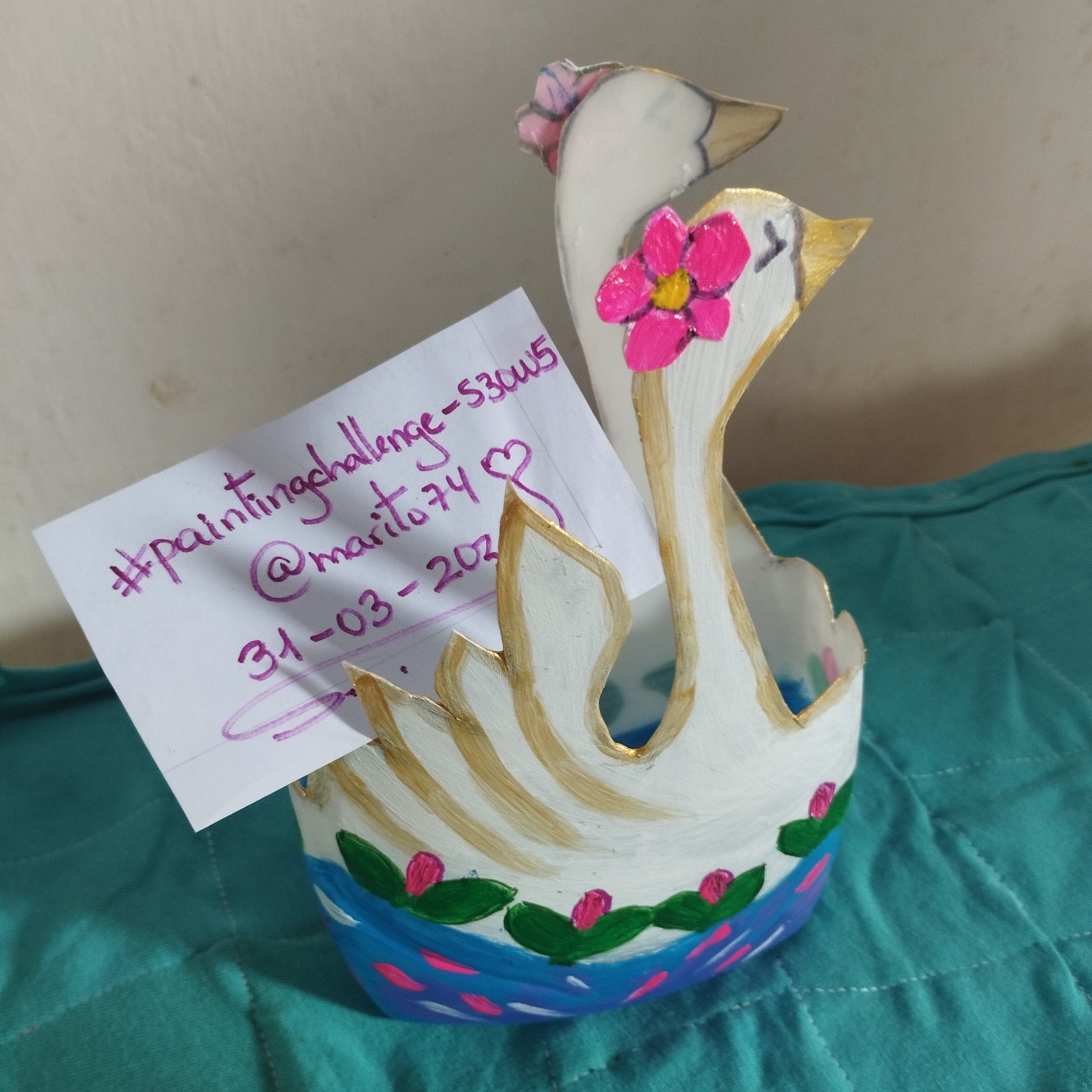 Wow this is absolutely beautiful😍 Transforming a simple plastic bottle into such an elegant pair of swans is incredibly creative. You know I love swans. I really love the soft color blends, delicate flowers and golden touches.It add a unique charm to the piece. It is amazing dear how you turned something that could have been waste into a functional and decorative item.It makes your work both artistic and meaningful.