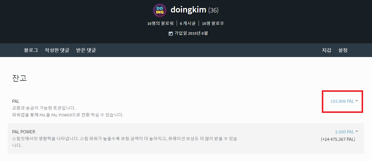 현재까지 누적된 큐레이팅 페이아웃 금액은 193.906 PAL입니다.