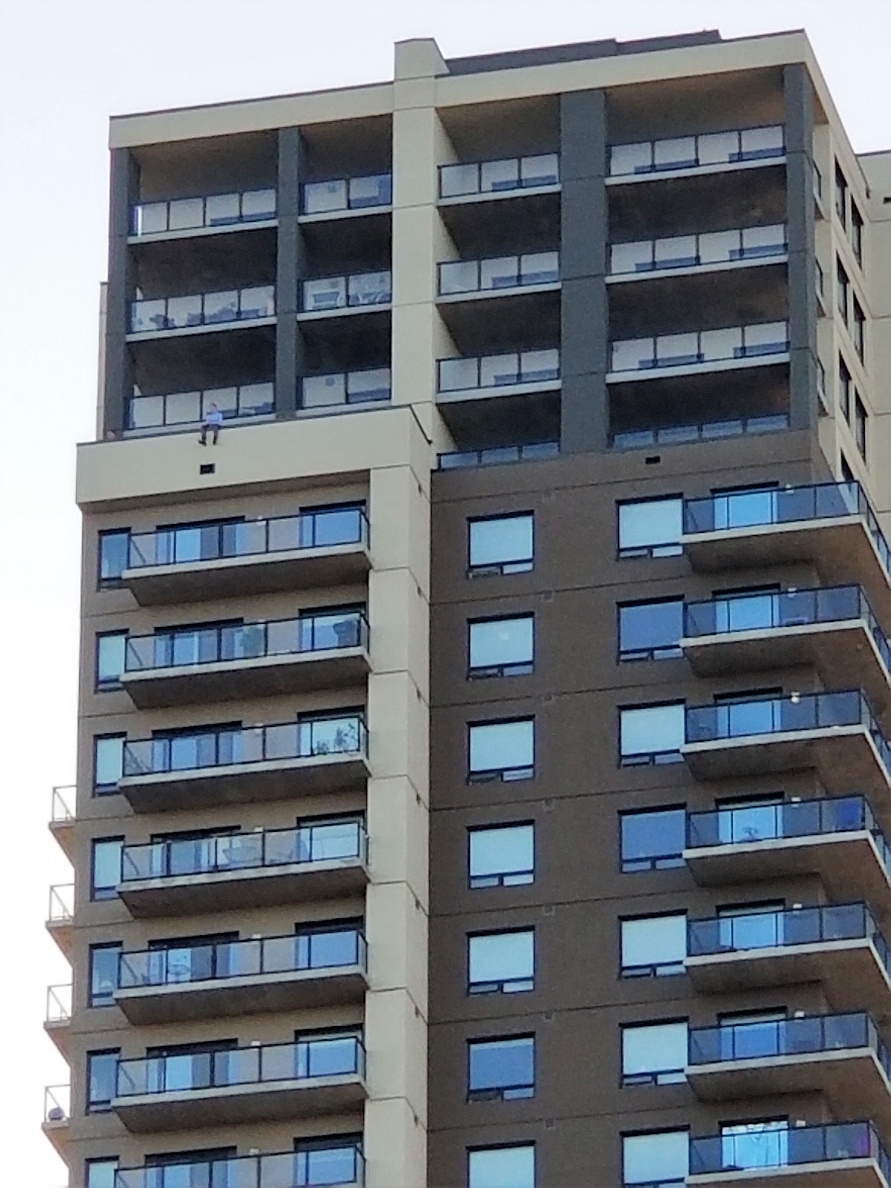 Ugly apartment building in Edmonton. But the point was the man on the balcony. Did you spot him?