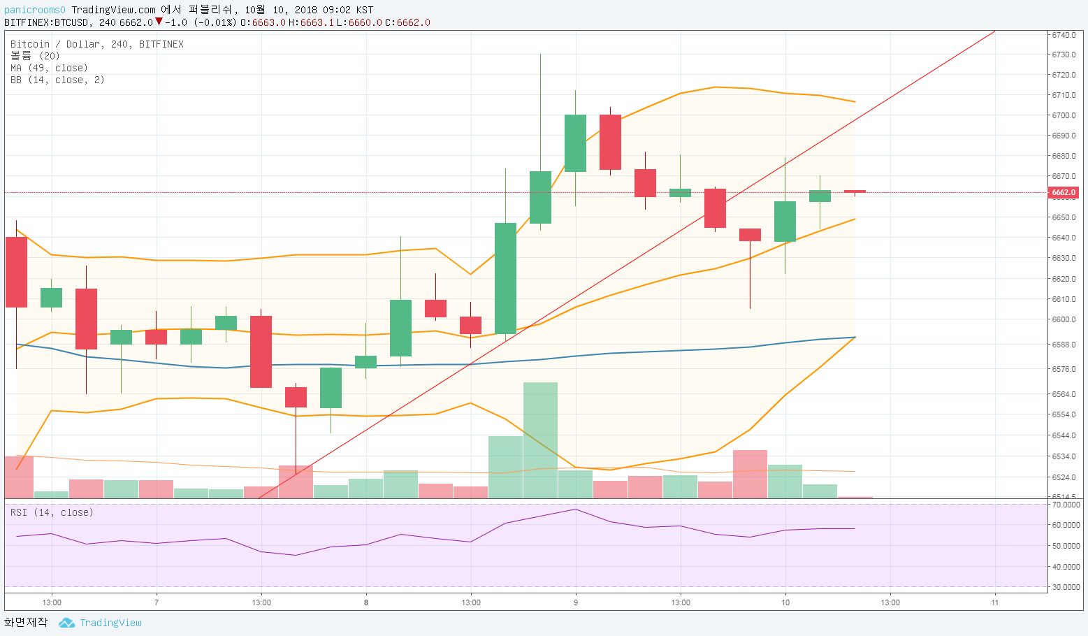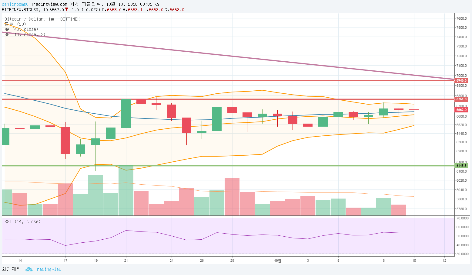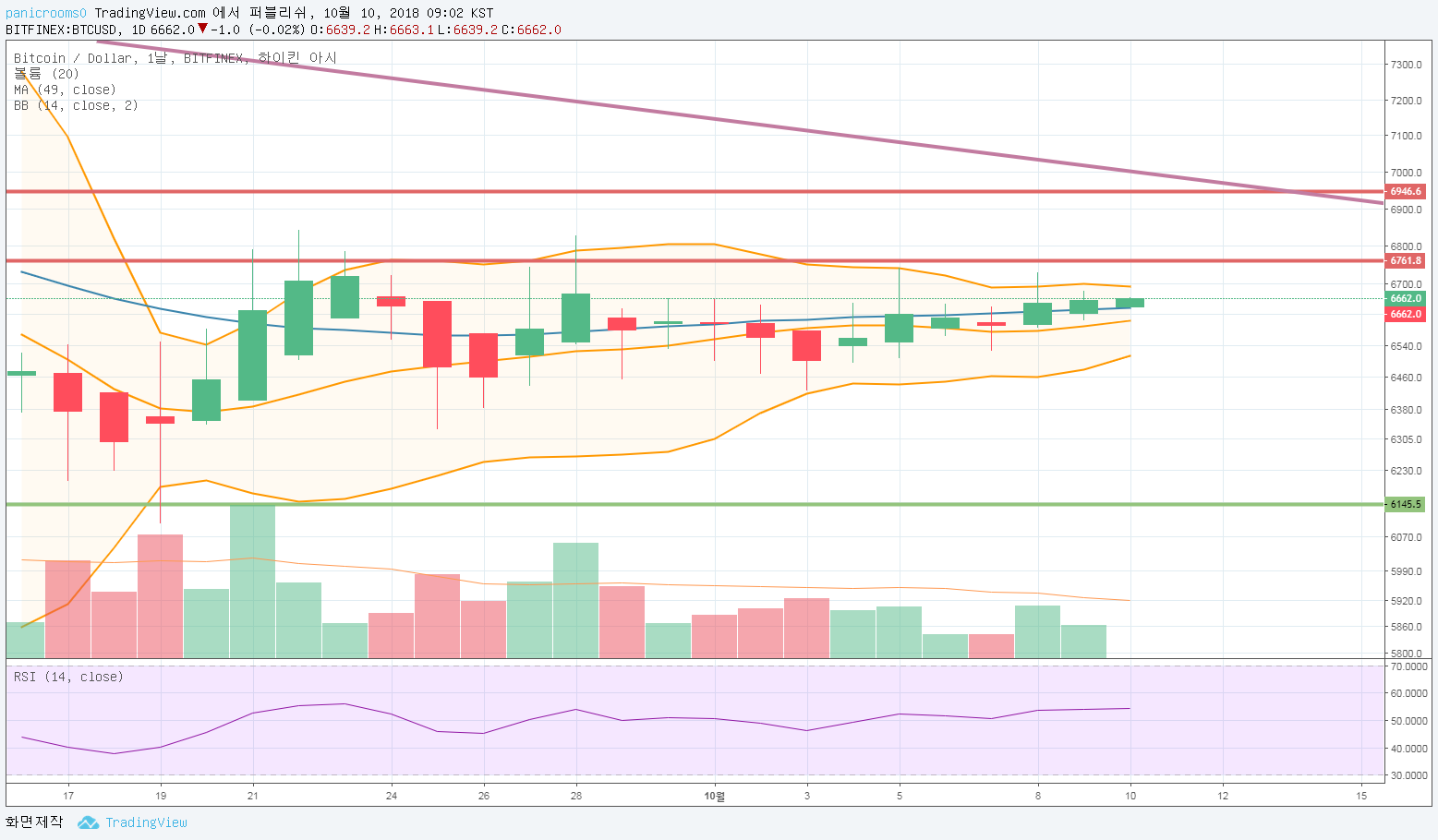 BTCUSD 2018. 10. 10. - 강한 저항, 약해진 상승세
