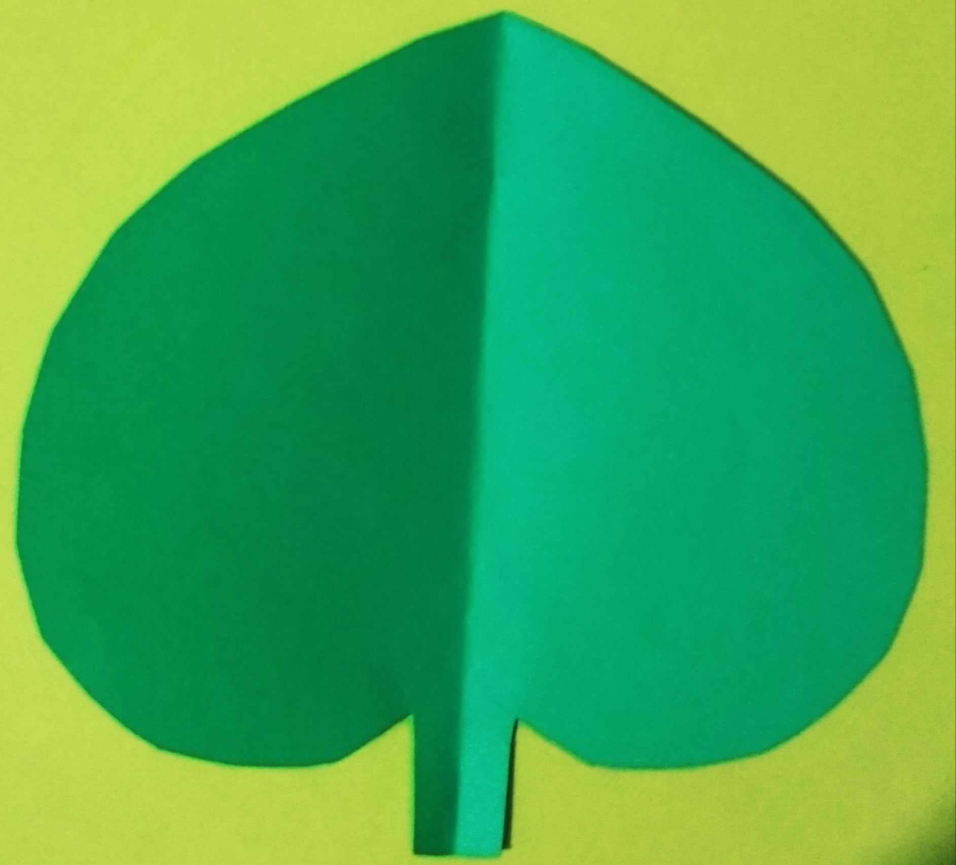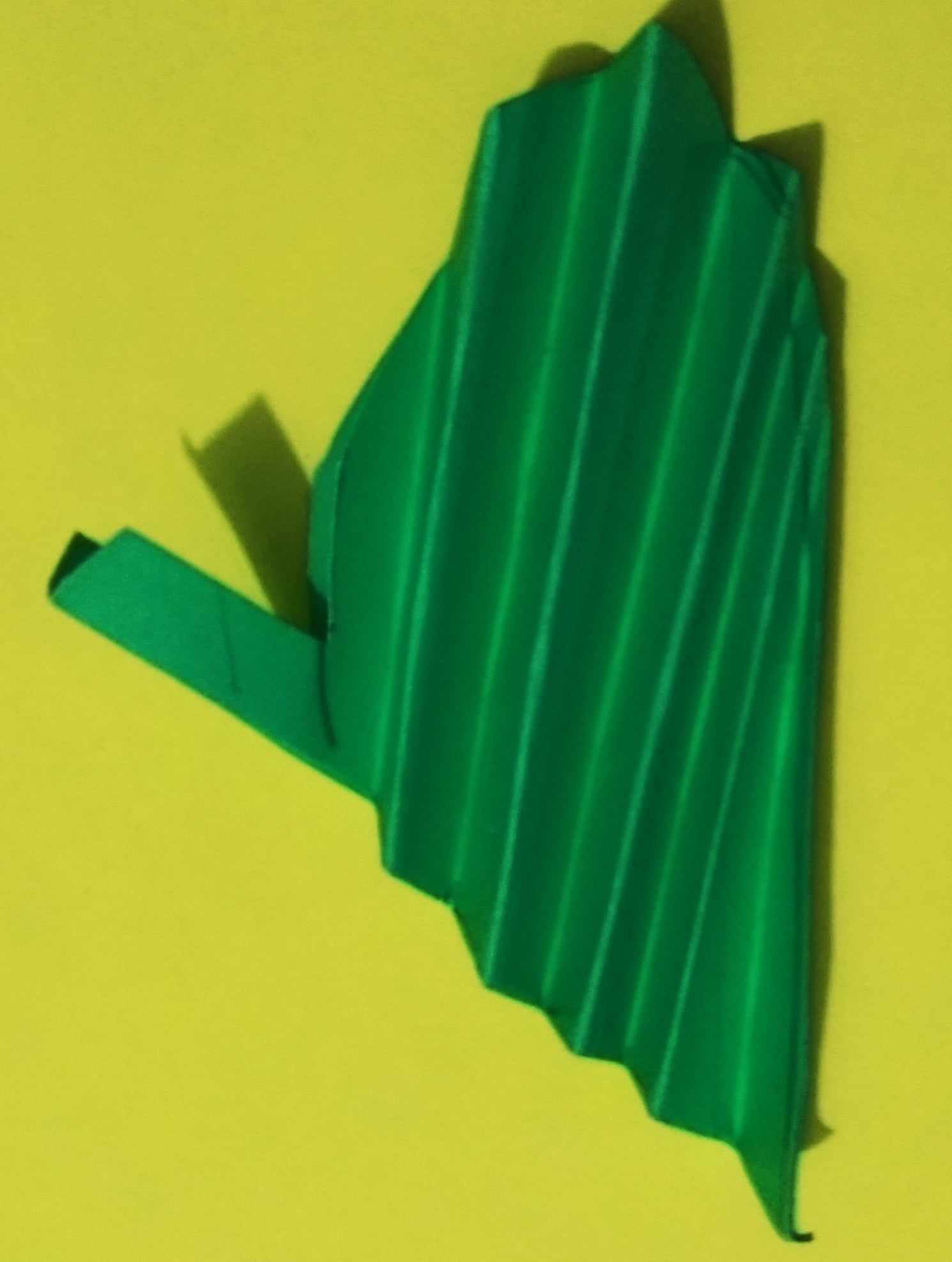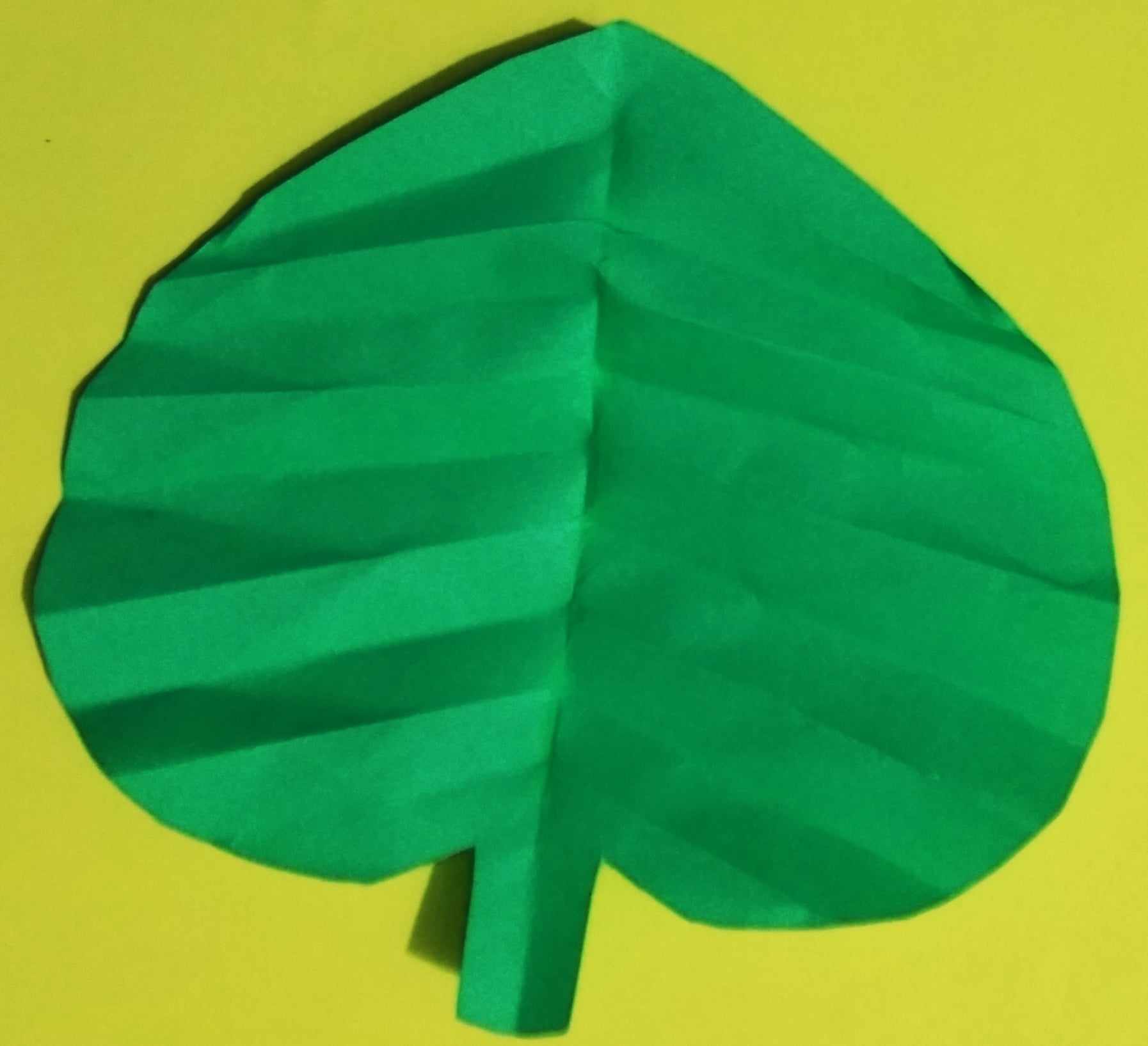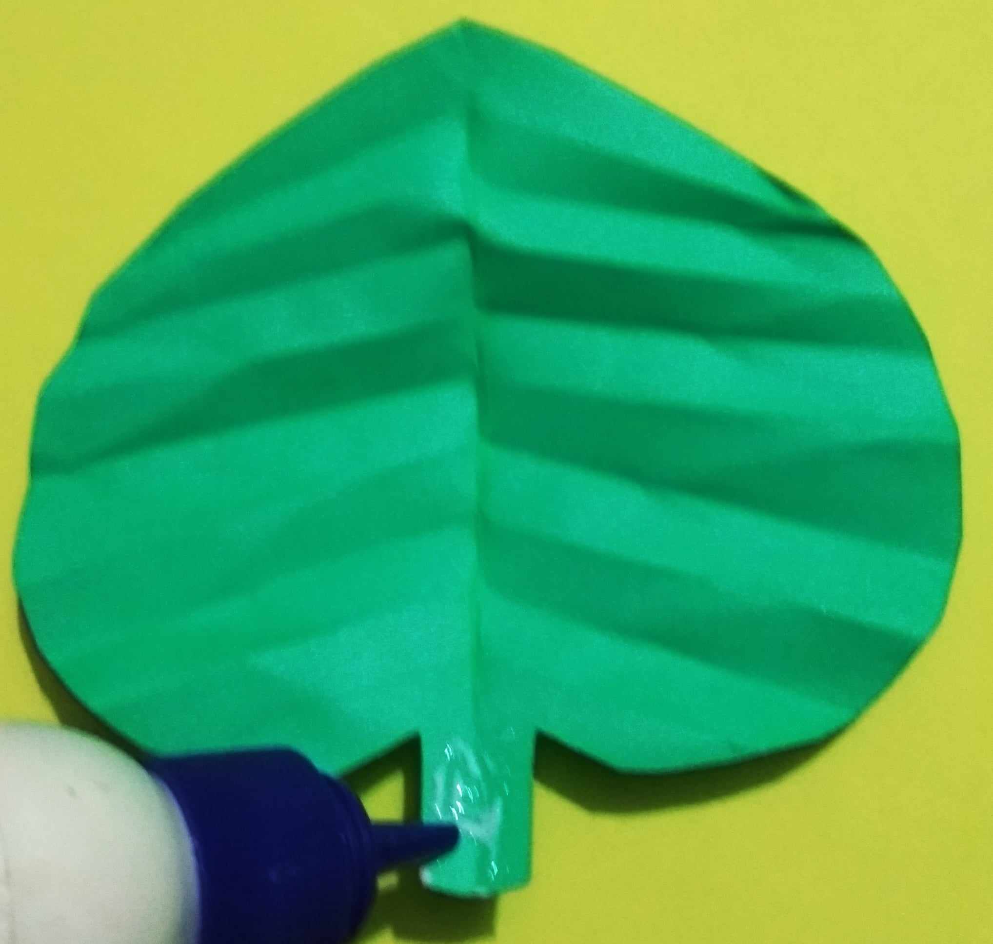 এবার শাপলা ফুলের পাতা বানানোর জন্য সবুজ রং এর কাগজকে ছবির মতো করে ভাঁজ করে কেটে নিয়েছি। এবং পাতার শিরা তৈরি করার কাগজটিকে কয়েক ভাঁজ করে নিয়েছি। ছবির মতো করে।