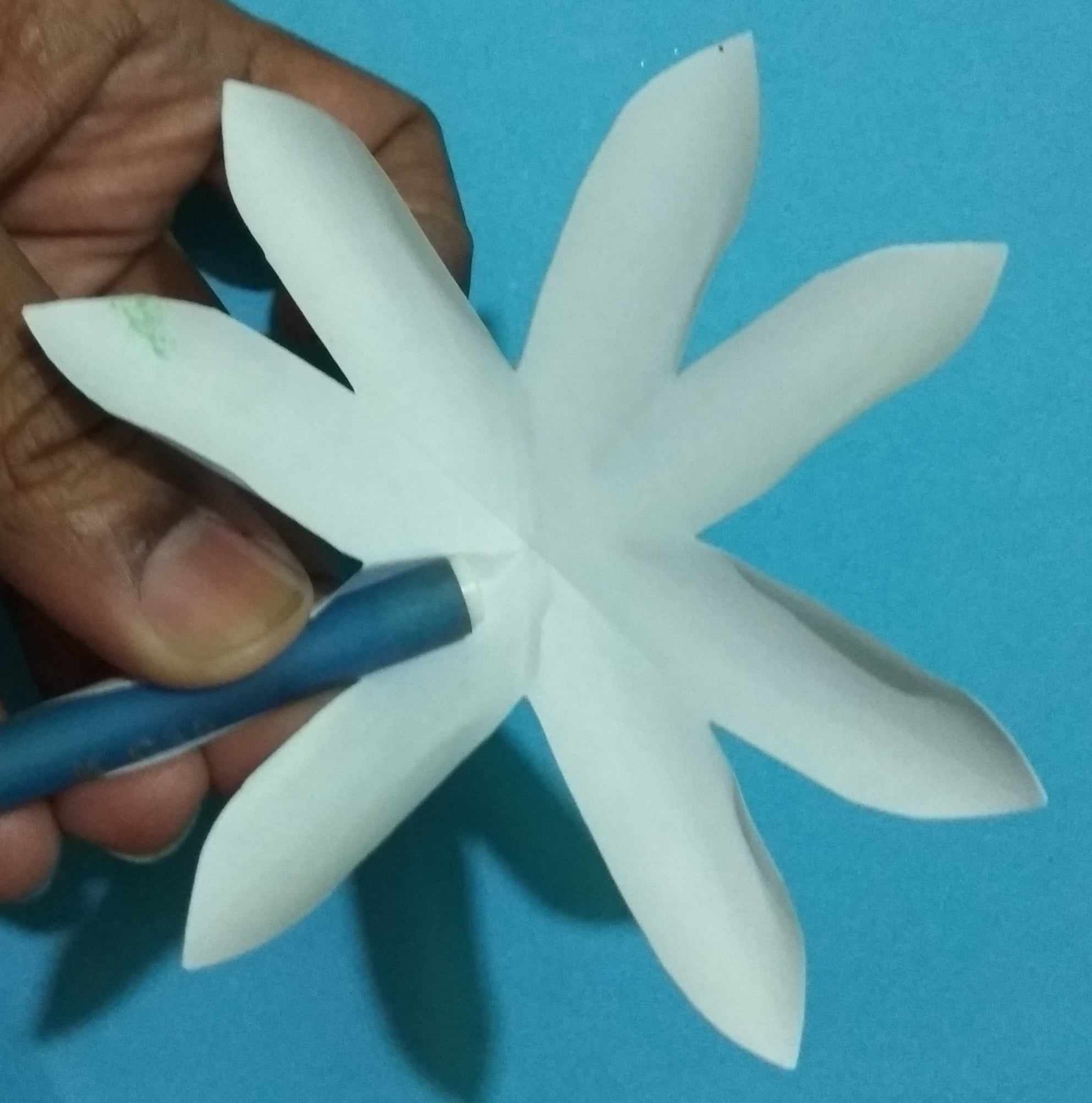 এবার একটি কলম দিয়ে পাপড়িগুলোকে প্যাচিয়ে নিয়েছি। দেখতে যাতে সুন্দর লাগে। এভাবে সবগুল ফুল করে নিয়েছি।