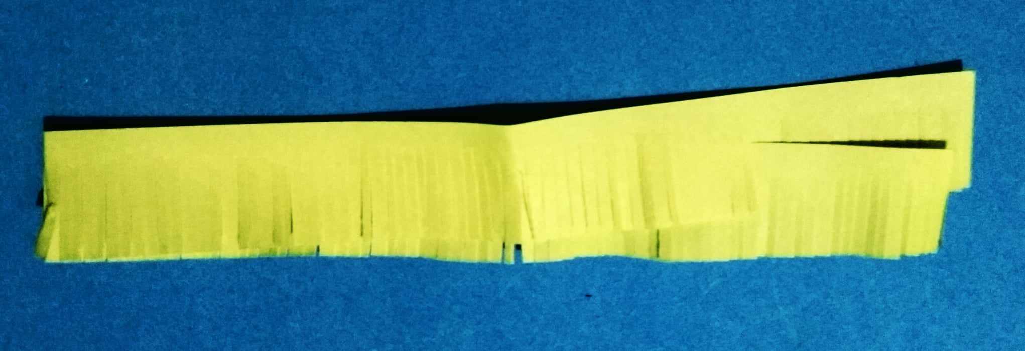 এবার হলুদ রং এর কাগজ চিকন করে কেটে নিয়েছি। এবং এক পাশে চিকন চিকন করে কেটে নিয়েছি।