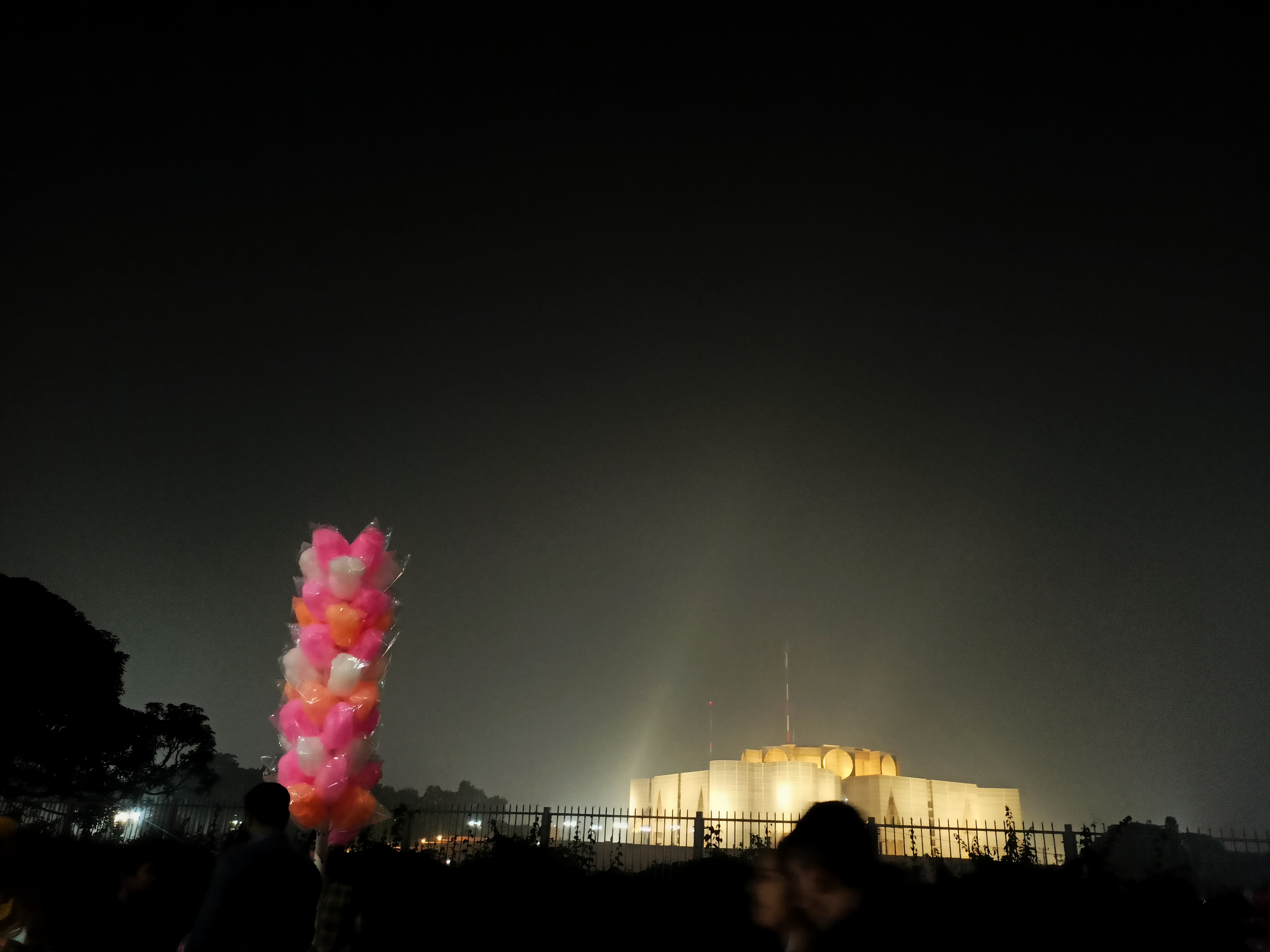এর আগেই বলেছি রাতের যে আলাদা সৌন্দর্য আছে সেই সৌন্দর্যে বিভিন্ন বস্তুকে অনেক আকর্ষণীয় করে তোলে। কৃষ্ণচূড়া গাছটিকে দিনের বেলা হলে হয়তো এত ভালো দেখা যেতো না। রাতের বেলায় সবুজ গাছ এবং পিছনের কাল আকাশটা অনেক বেশি ভালো লাগছে। আর এখন আমরা সামনের দিকে মেন পয়েন্টটাতে যাব। তার আগে ফোন করি মিরপুর থেকে যে ছোট ভাই এসেছে তাকে সে বলল মাঝে মাঝেই জায়গাতে বসে আছে। তাই আমাদের এখন গন্তব্য সংসদ ভবনের এরিয়ার মাঝামাঝি স্থানে গিয়ে তার সাথে দেখা করব।