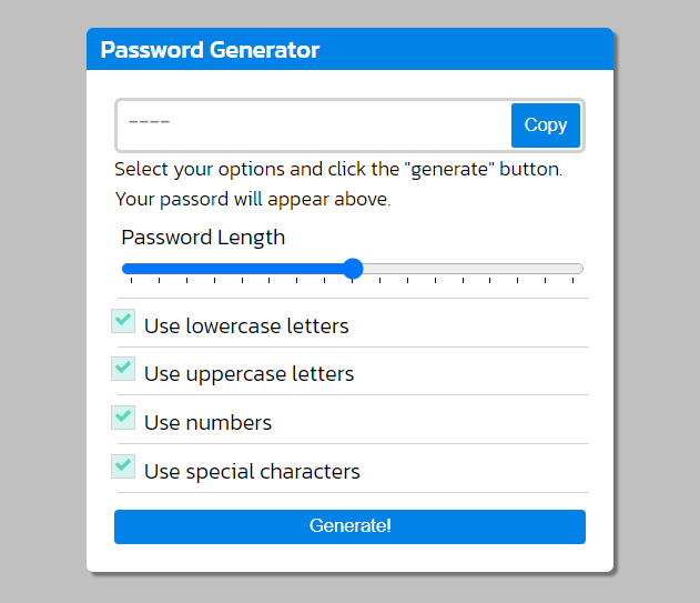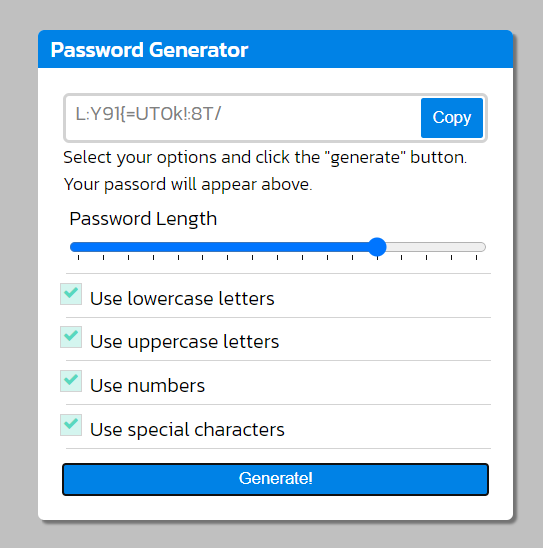 First Select your options. I recommend select all the option for Generate a secure password.