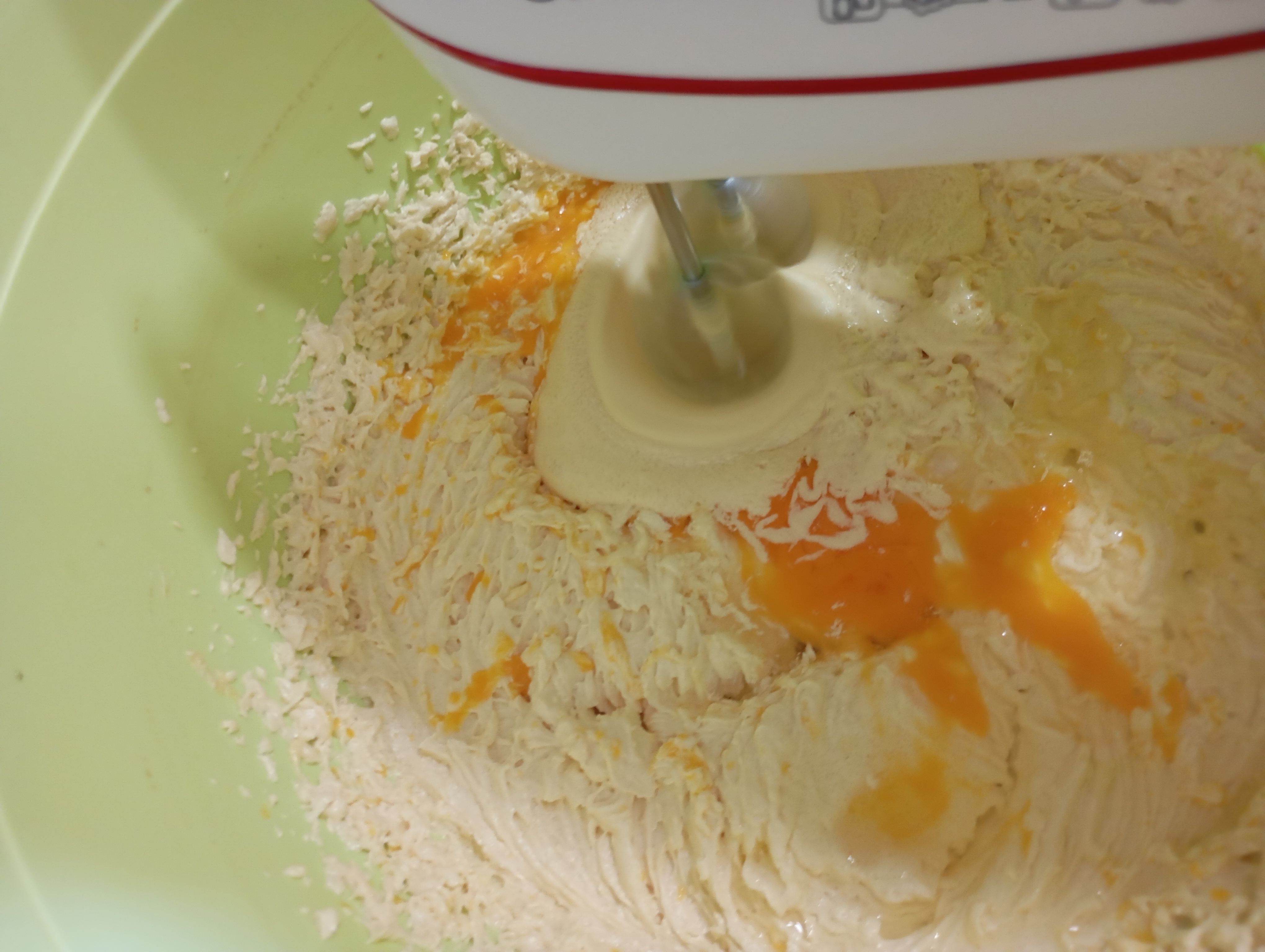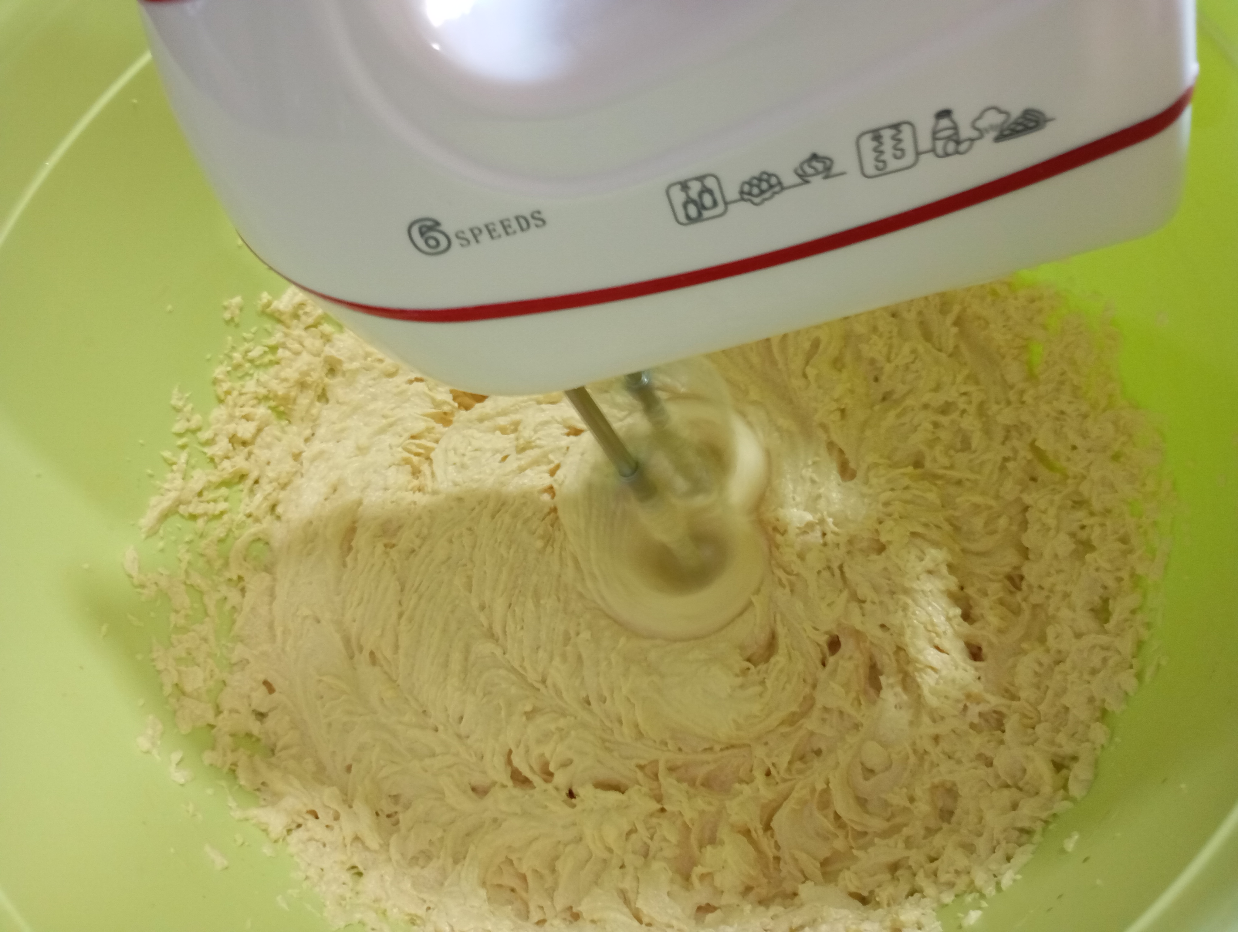 Comencé batiendo con la batidora, la margarina y el azúcar, hasta blanquear un poco la mezcla, y que no se sientan los grumos del azúcar.