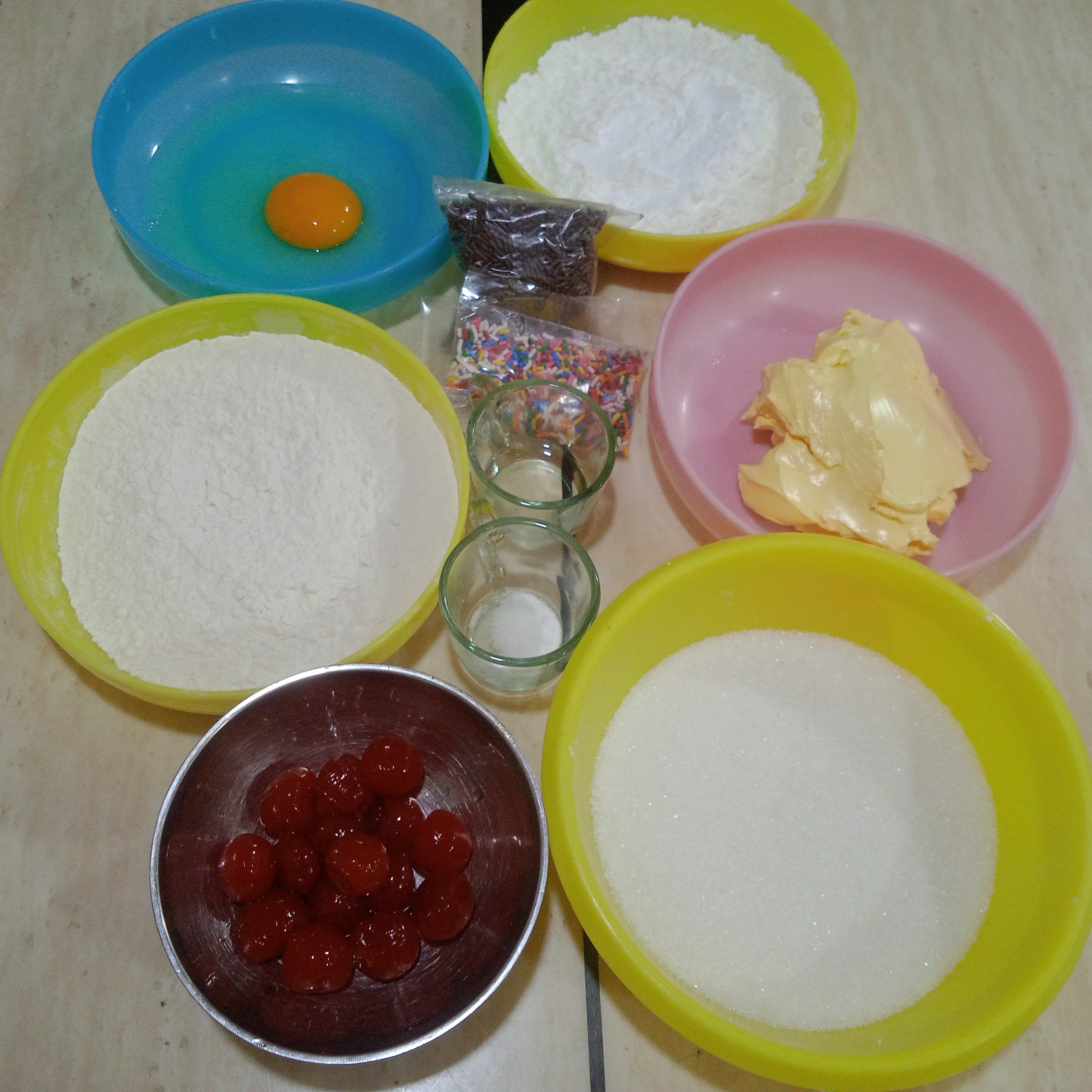 ✓ En una bandeja colocamos papel encerado o en su defecto engrasa y enharina la bandeja, formamos nuestras galletas, dejando unos centímetros entre cada galletas, puedes darle la forma que gustes, agregamos el topping de preferencia en esta oportunidad cerezas, lluvia de colores y de chocolate, puedes colocar también mermelada, o al tener las galletas listas puedes agregar chocolate fundido.