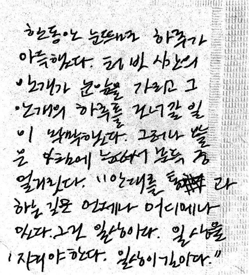 한동안 눈뜨면 하루가 아득했다. 텅 빈 시간의 안개가 눈