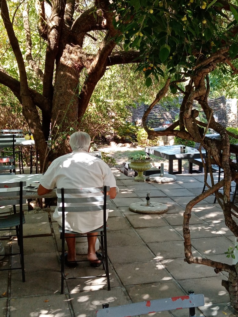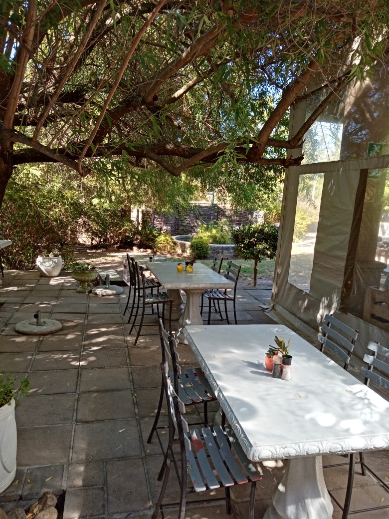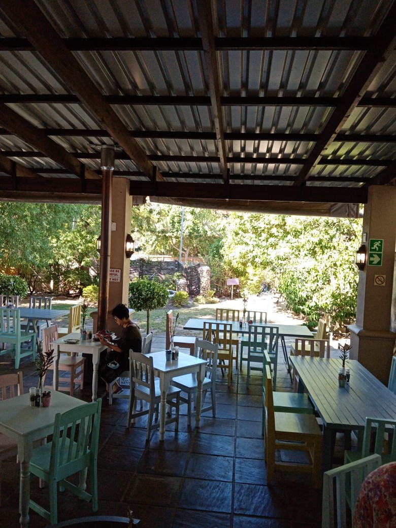 You can choose to sit inside or outside, among the shrubs and flowers.