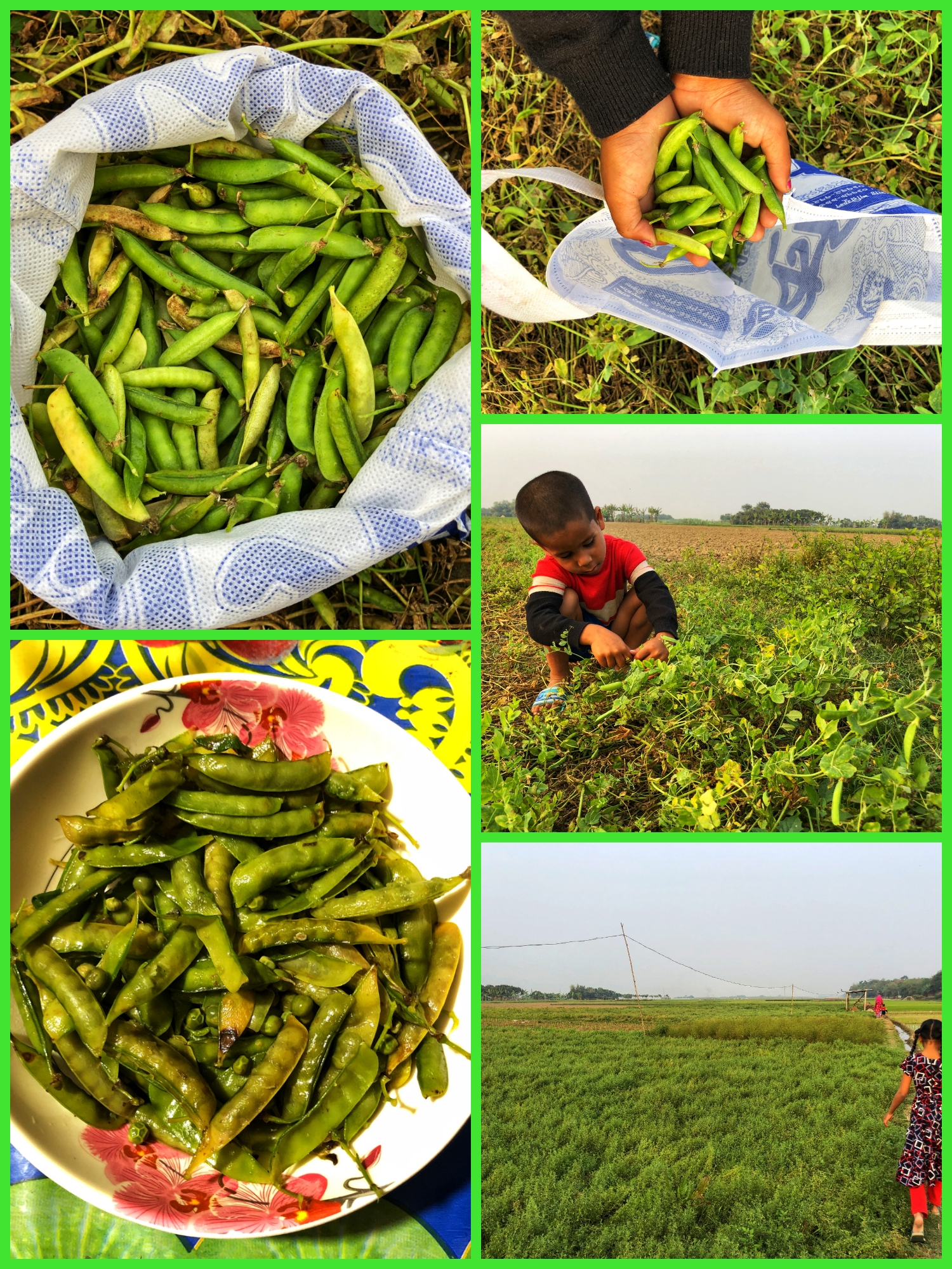 এক সময় আমরা পৌঁছে যাই আমাদের নির্দিষ্ট স্থানে। যেখান থেকে আমরা মটরশুঁটির ফল তুলব। দুর্ভাগ্যবশত মটরশুঁটির অনেকগুলো ফল পেকে গিয়েছিল। কিছু কিছু স্থানে কাঁচা ফল ছিল আমাদের অনেক বেঁচে তুলতে হচ্ছিল। এজন্য আমাদের অনেক সময় লাগছিল মটরশুঁটির ফল তুলতে। যাইহোক তারপরও সবাই মিলে তুলতে শুরু করি।