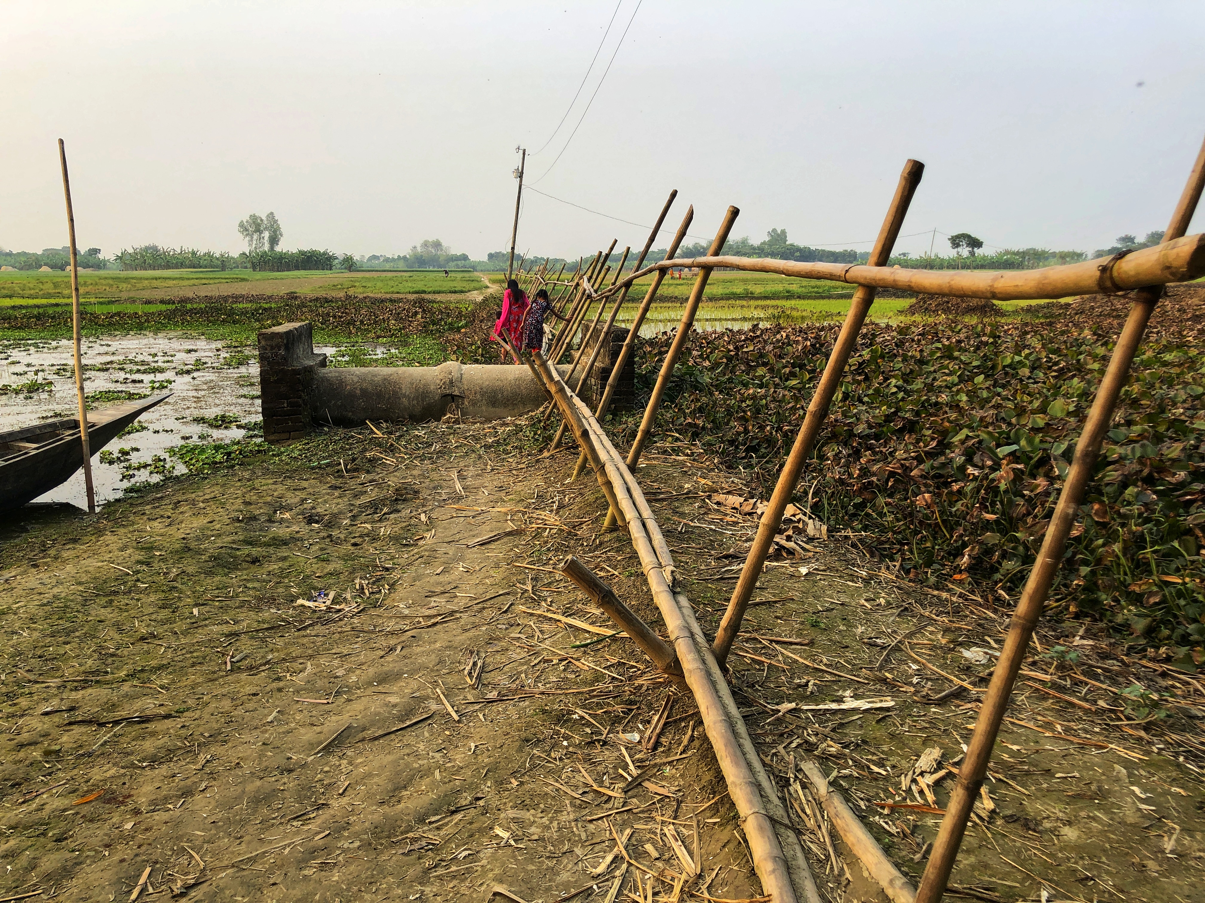 এই বলেই বিকেল পাঁচটার দিকে রওনা হয়ে গেলাম মটরশুঁটির ফল তোলার জন্য মাঠের দিকে আমার পিচ্চি পিচ্চি ভাই বোনদের নিয়ে। ওদের সাথে খুব ভালই সময় কাটছিল আমার। মাঠে যাওয়ার সময় একটি জায়গায় পানি ছিল। এজন্য আমাদের বাঁশের তৈরি একটি সাঁকো পার দিতে হয়। জানিনা অন্যান্য জায়গায় এটার নাম কি বলে। যাই হোক তারপরে সাঁকো পার হয়ে সবুজ ক্ষেতের মাঝখান দিয়ে চিকন একটি মেঠো পথ হেলে ডুলে যেতে হয়।