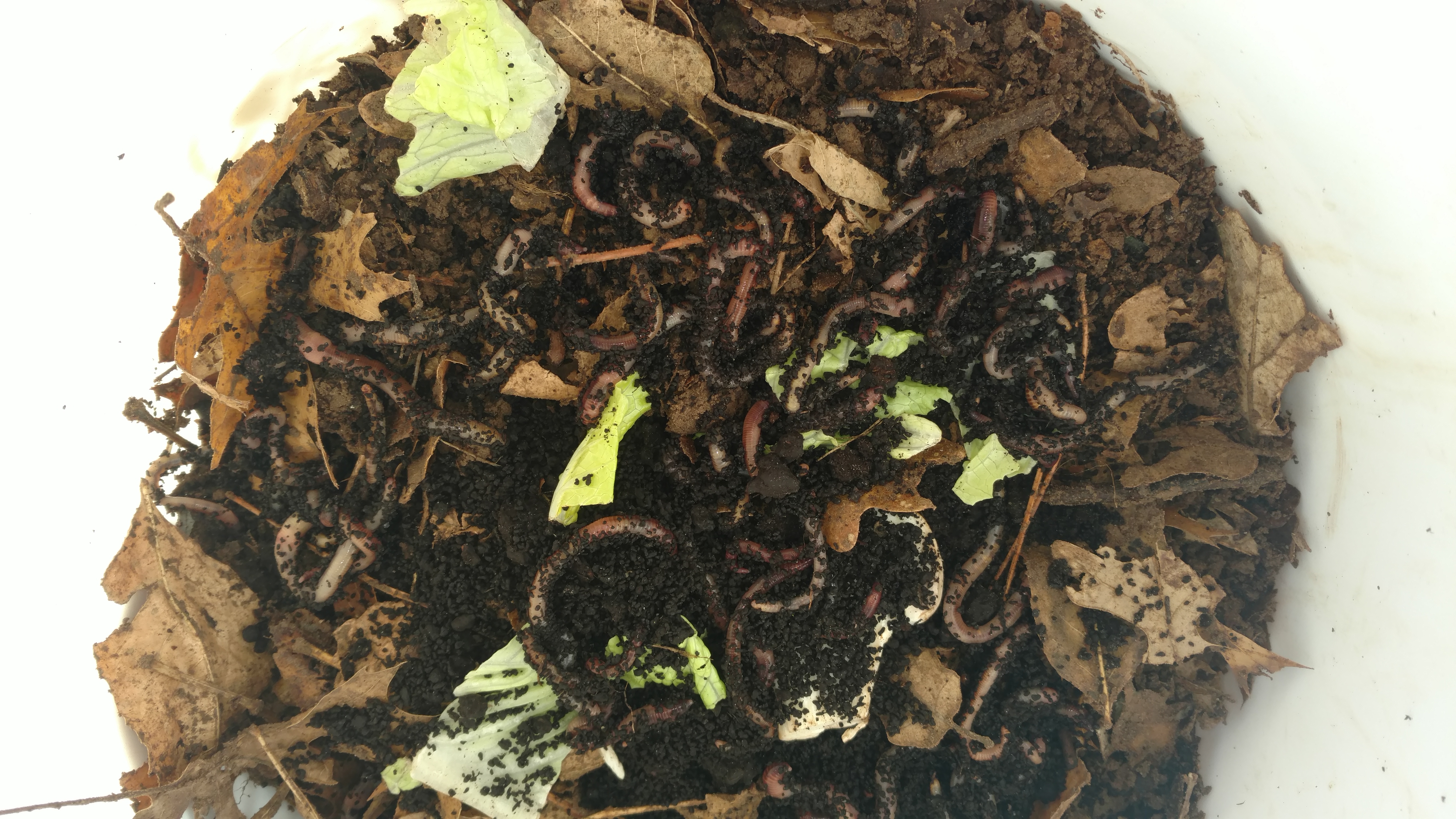 Well, I tried counting them and there's well over 30 worms in that little container. I've read that a colony can double in number in a month, and I'm not in a huge hurry right now. I mixed sandy soil, whole leaves, and mostly composted leaf bits in the bucket until it was fluffy, then added the worms.