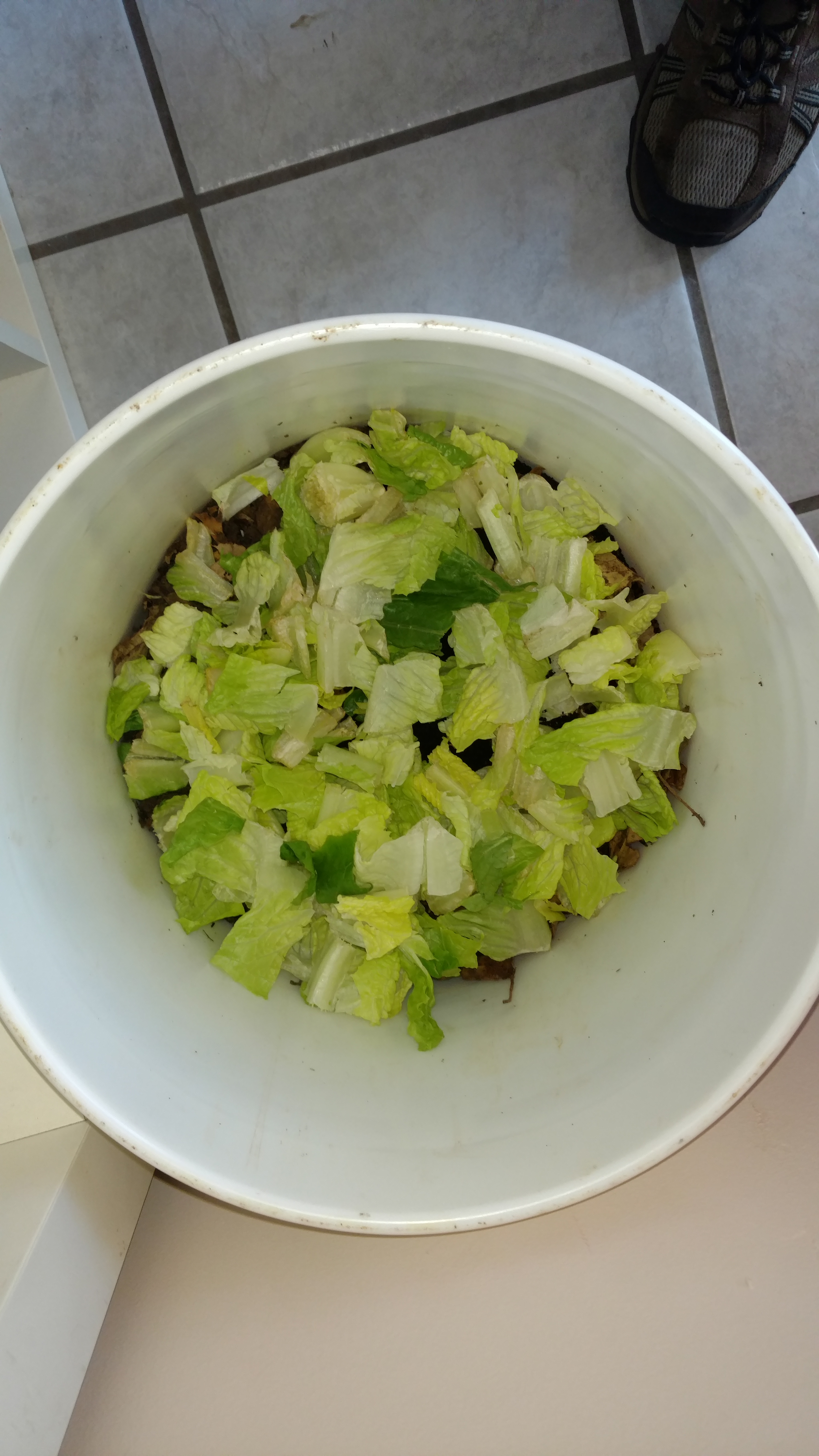 Lettuce on top that would usually be trashed or composted. The family has been instructed to up their potato and banana peel production for the sake of the worms. Little do they know that I'm hoping the fresh fruits and veggies will also serve to increase their health.