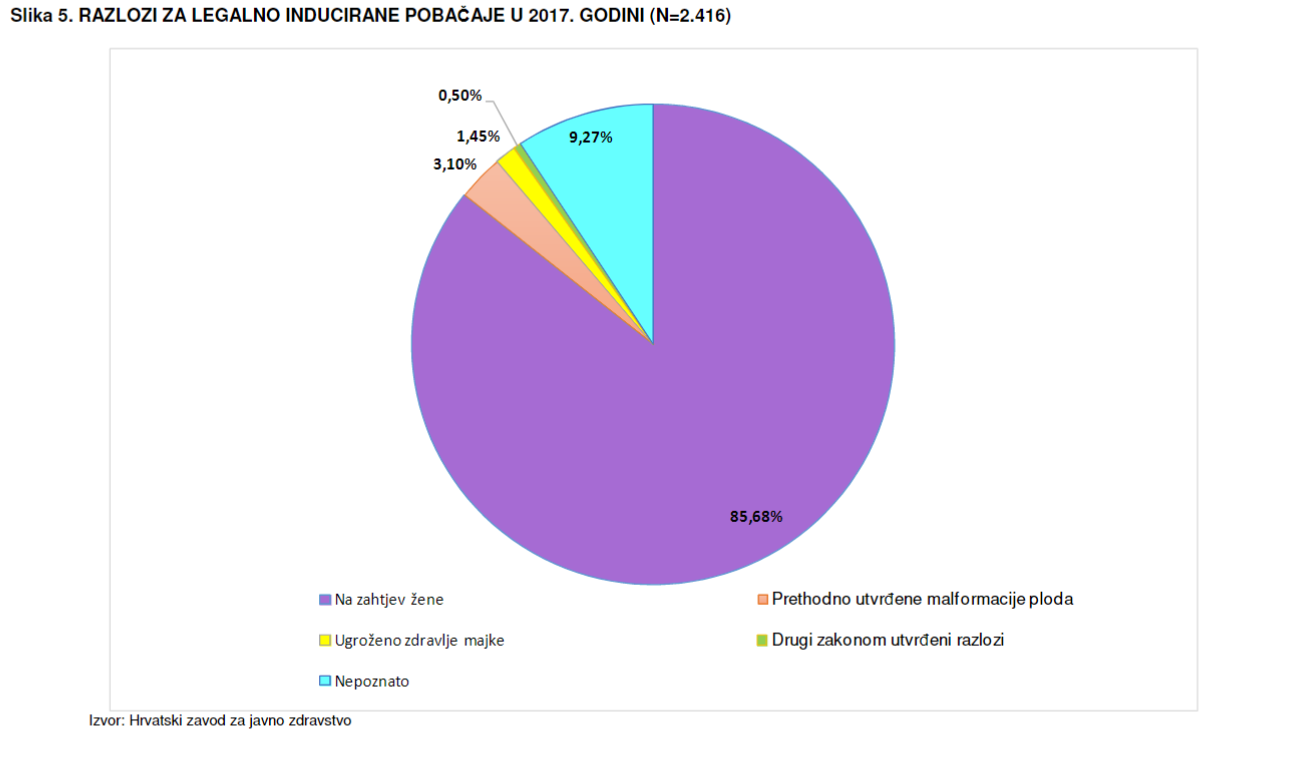 U Hrvatskoj udio pobačaja koji nisu zdravstveni iznosi 85,68%.