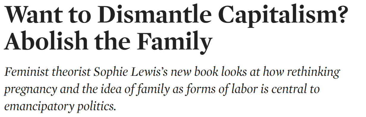 Država ne može temeljito i pravilno podjarmiti pojedinca koji je već "podjarmljen" osjećajima ljubavi i potrebom za ispunjavanjem određene uloge unutar vlastite obitelji i/ili zajednice. Ono što ljevica želi je monopol na vjernost. Ako pojedinac ima vjernost prema bližnjima veću nego što je ljubav prema "kolektivu" ili državi jedini odgovor na to je eliminacija obitelji(ili drugih sličnih zajednica). Ako pojedinac sebe ne može natjerati na brigu o "kolektivu" koji bi trebao prioritizirati prije svega ostaloga, koji je odgovor na taj problem? Ako pojedinac ne može mariti za apstraktni koncept(a ne može) treba ga nagovoriti da ne mari za ništa. Ovakvo stanje je može nazvati paklom na Zemlji - život koji postoji na životinjskom, ali ne i na ljudskom nivou.