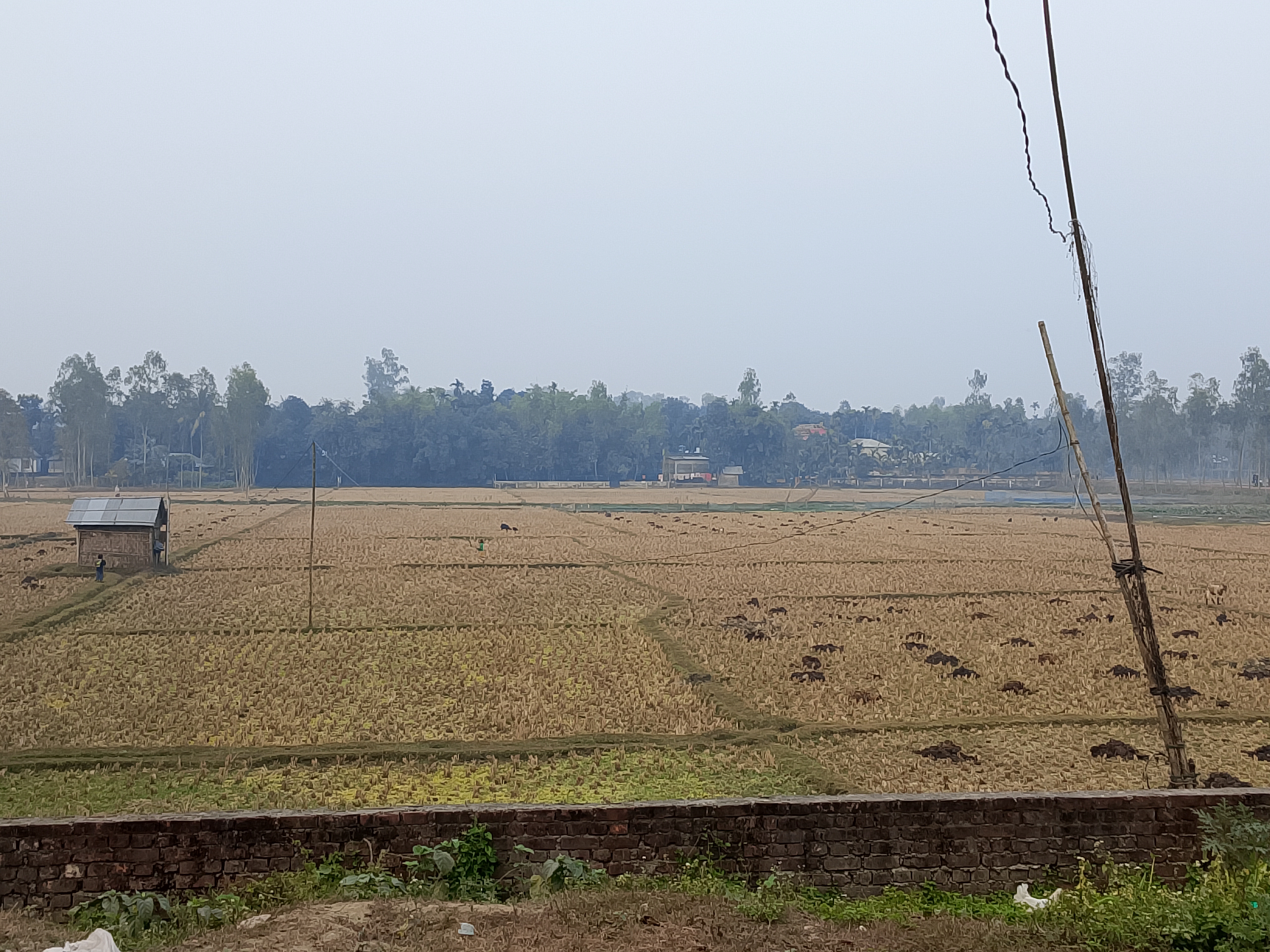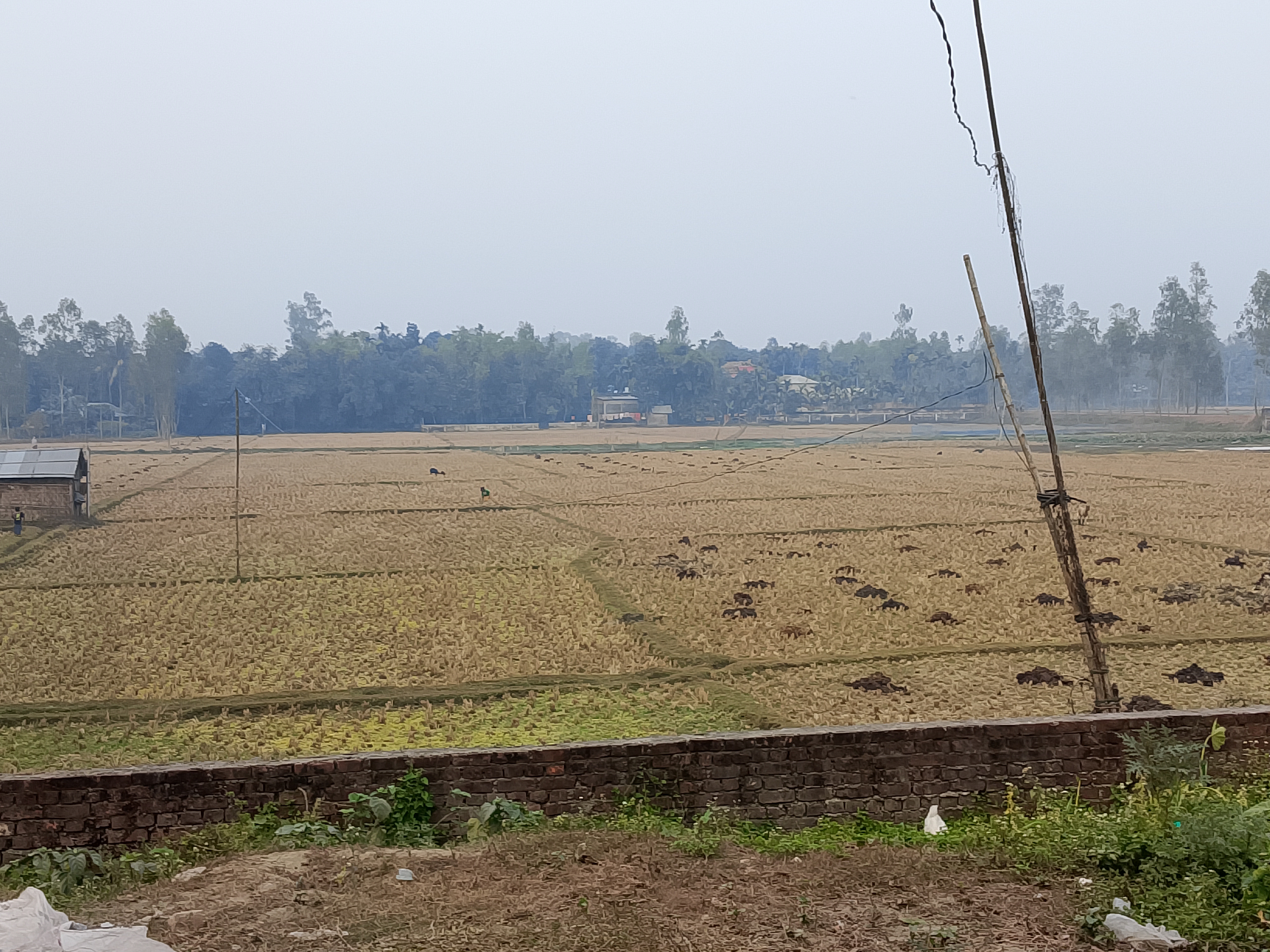 ধান কাটার পর অনেক জমি খালি পড়ে থাকে। এই জমির জন্য কীটনাশক রাখা হয়েছে, এবং জমি চাষের আগে জমিতে কীটনাশক স্প্রে করা হবে। এরপর, নতুন ফসল ফলানোর জন্য আবার বীজ বপন করা হবে। এই এলাকার জমিগুলি প্রচুর পরিমাণে জমি জুড়ে রয়েছে। চারপাশে বিভিন্ন গাছপালা রয়েছে এবং এই ছবিগুলির দৃশ্যগুলি একটি বিস্তৃত এলাকা দেখায়। এখানকার জমি বিভিন্ন মানুষের, কিন্তু যেহেতু অনেক জমি একসাথে চাষ করা হয়, তাই এটি খুব সুবিধাজনক হয়ে ওঠে। তারা এখানে খুব ভালোভাবে চাষ করতে পারে, এবং যখন চাষাবাদ চলছে, তখন ক্ষেতগুলি খুব সুন্দর এবং চোখে মনোরম দেখায়।