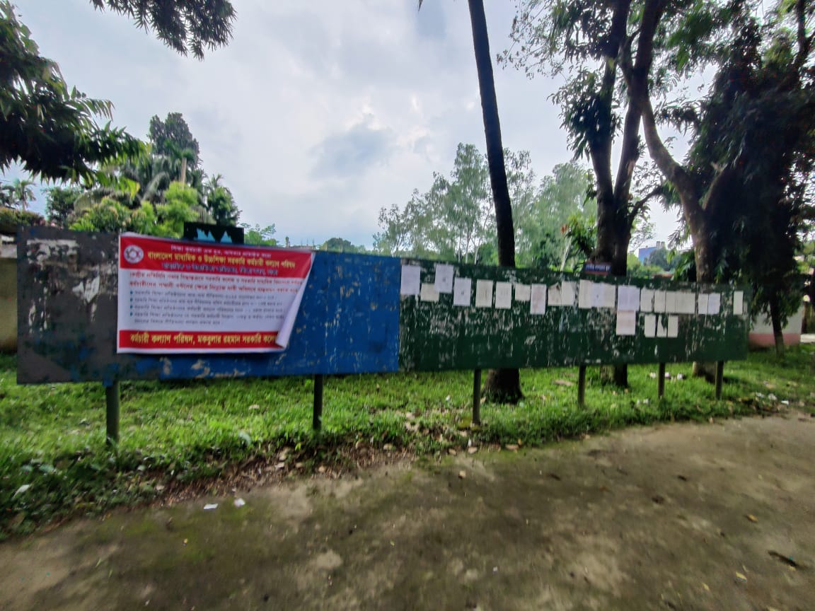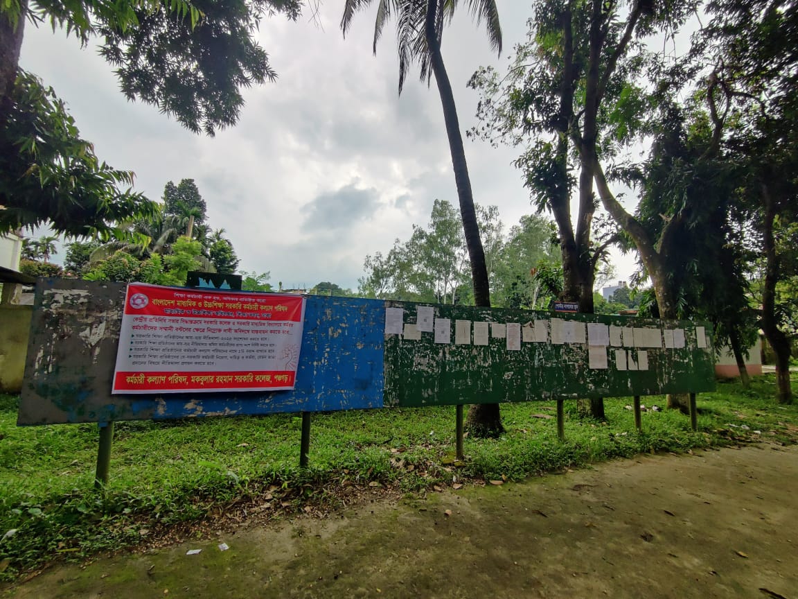 A large banner has been hung, and beside it, some smaller posters have also been displayed. Because of these, the place looks more organized and beautiful. People can read them here, which is very useful. So, hanging these banners has made the place much better.