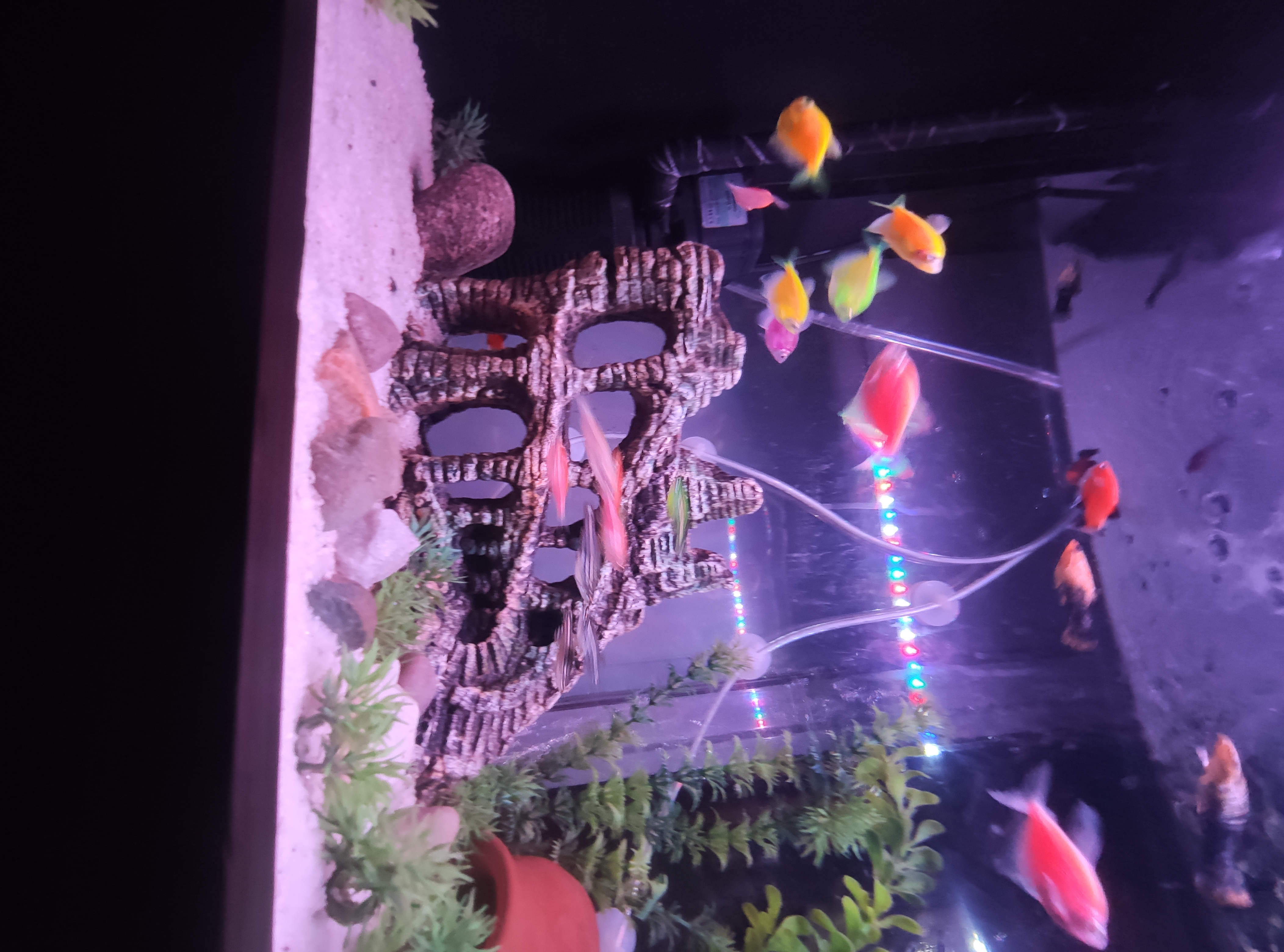 এটি একটি আ্যকুরিয়াম এর ছবি। এর মধ্যে অনেক ছোট ছোট মাছ আছে। আ্যকুরিয়াম টা আমার সেজো মামার। আমার সোনা দিদা এই আ্যকুরিয়াম ও এই মাছ গুলোর খুব যত্ন করে।মাছ গুলো যখন সাঁতার কাটে তখন দেখতে অনেক সুন্দর লাগে।