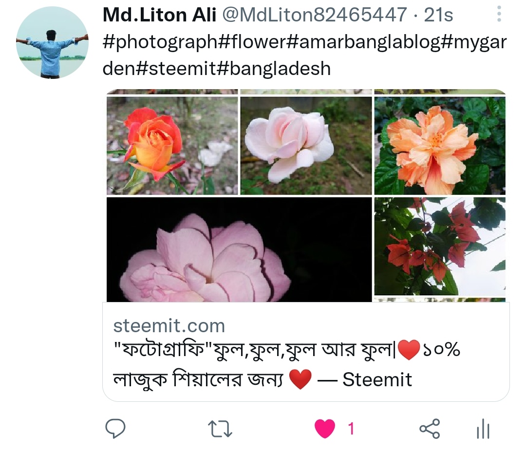 প্রত্যেকটা ফুলের ফটোগ্রাফি আমার নিজে করা বাগান থেকে তোলা আপনার ভাল লেগেছে শুনে খুব খুশি হলাম ধন্যবাদ আপনার জন্য শুভেচ্ছা রইল