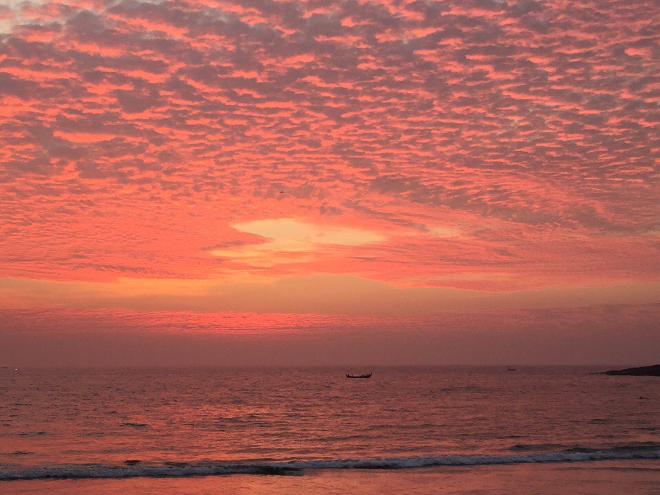 Kovalam is a resort by the Arabian Sea, India. The resort has three wonderful beaches. Tourists are attracted by the pleasant climate and historical places. My friend sent me these burning photos of clouds by the sea. I am pleased to share with you the beautiful sunsets of southern India.