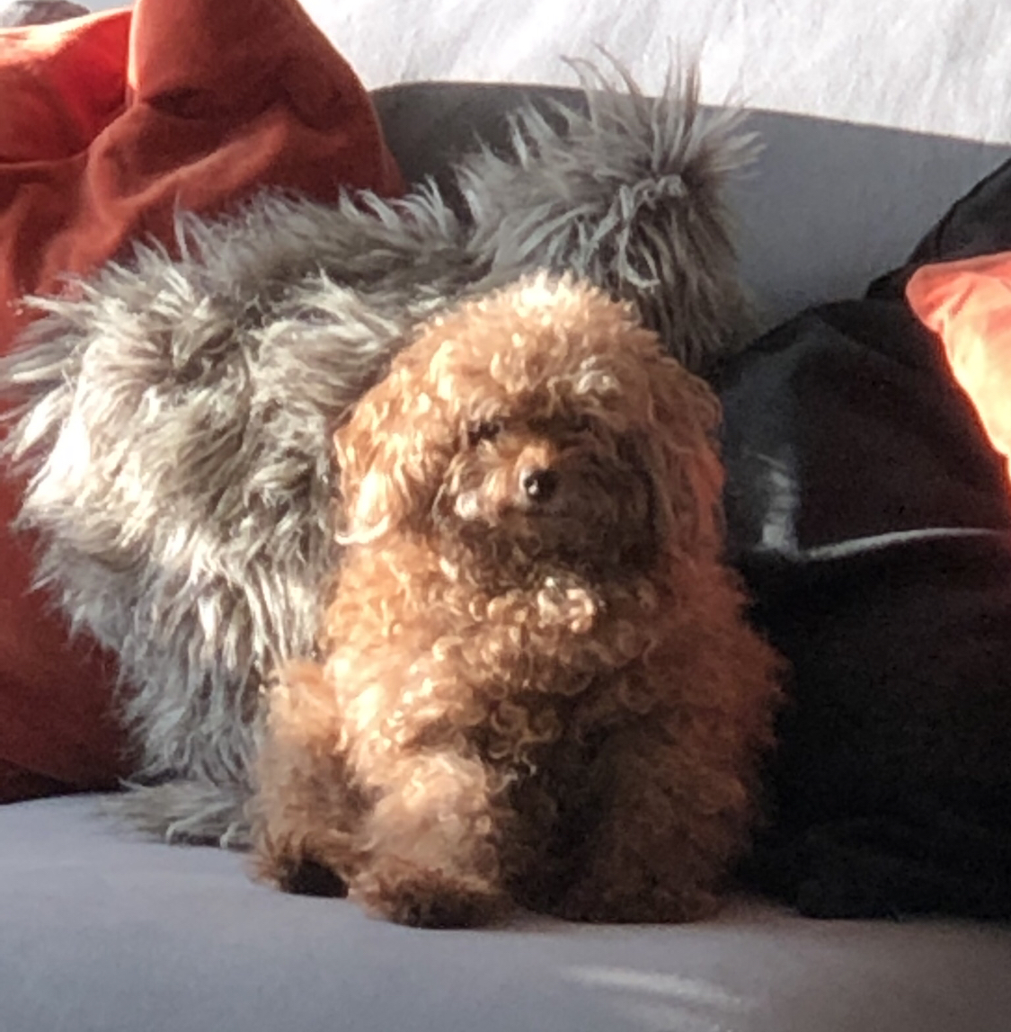 The other day when I looked at the sofa I suddenly realized that one of the pillows looked weird. Well it turns out it was my dog Happy sitting there. Her orange golden fur made me think she was an orange pillow for a second. This is probably a sign that I need to cut her fur. On the other hand she does look cute being so fluffy :)