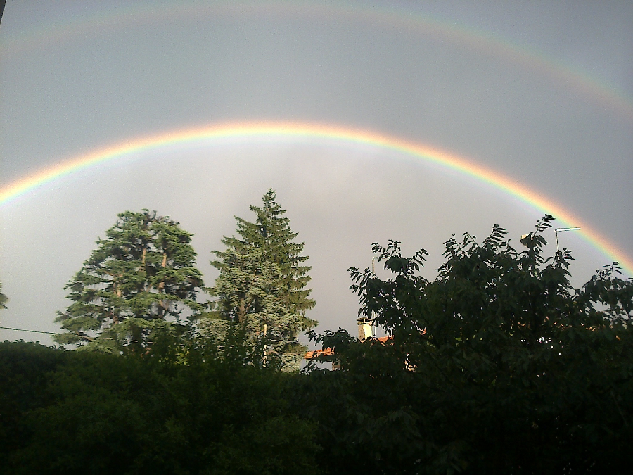 The other day after a storm we had a beautiful gift from mother nature, a gift that is not seen so often, at least not like this one. A double rainbow with the curvature so narrow as to be able to see both the beginning and the end of the rainbow and the sky color of two very marked shades, clear under the rainbow and dark above. It really seemed to be under a dome.