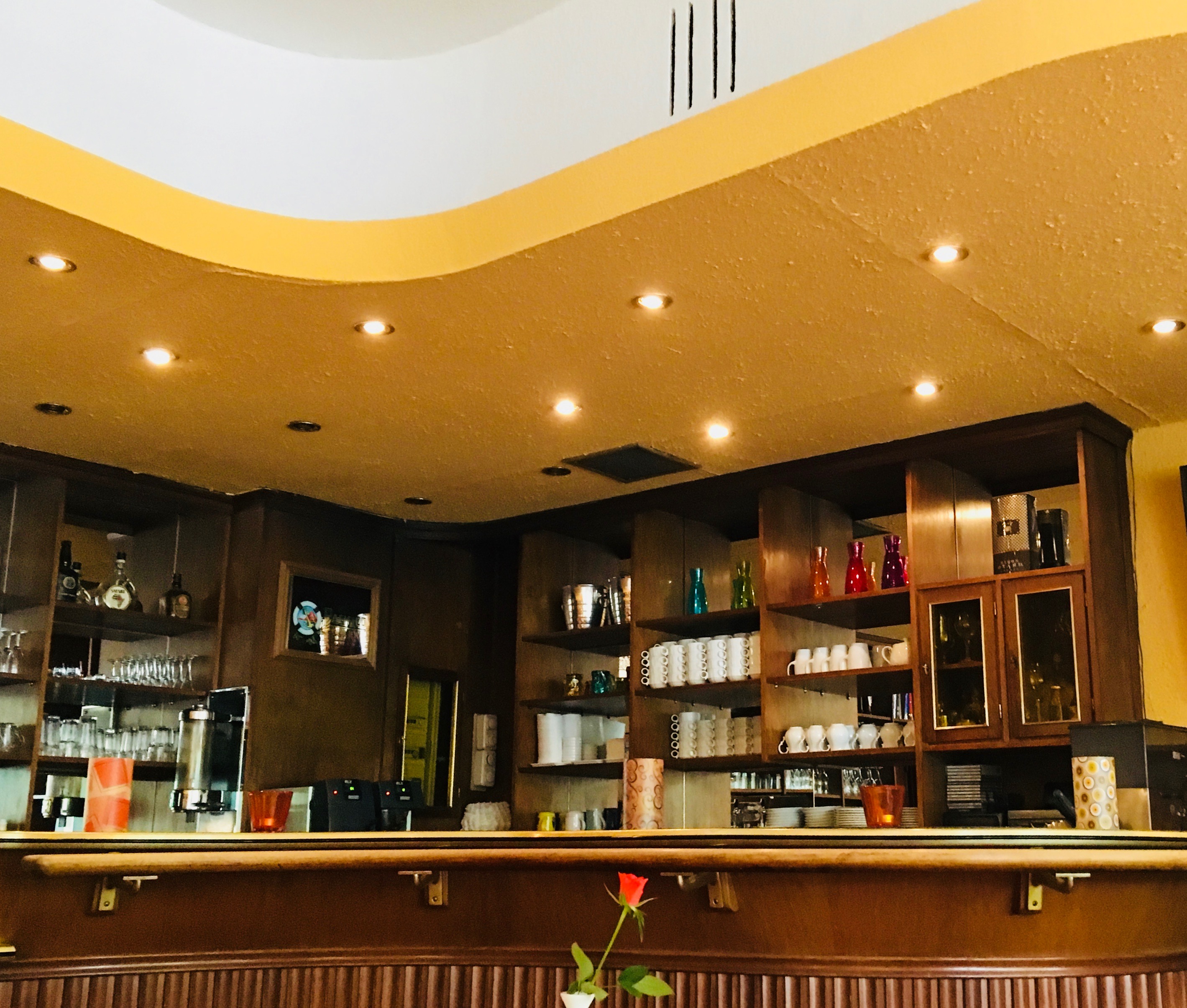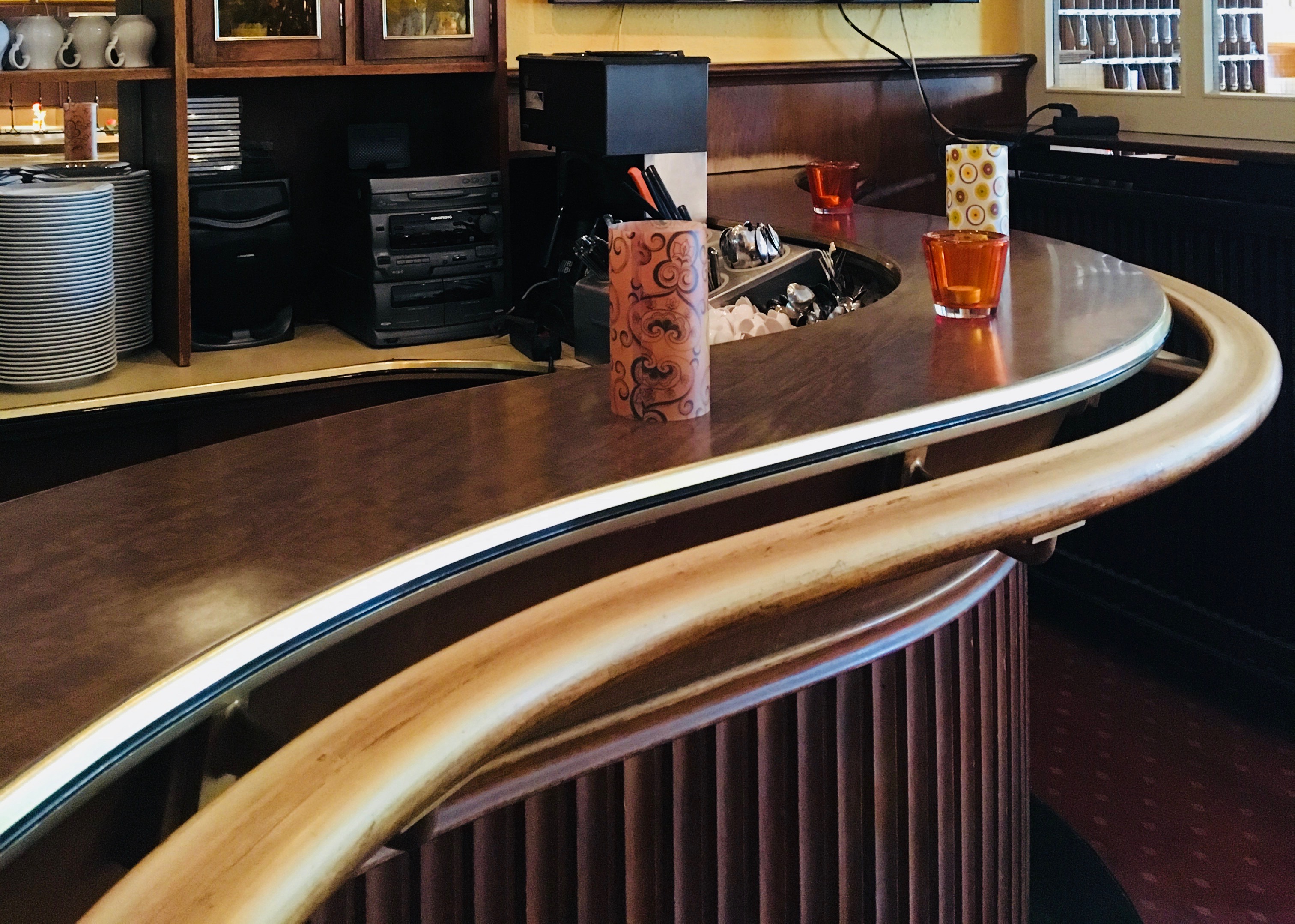 I admired the curved lines everywhere. You find them on the ceiling, in the shape of the S-shaped bar, in the elegant curves of the seats, all still original and beautifully preserved.