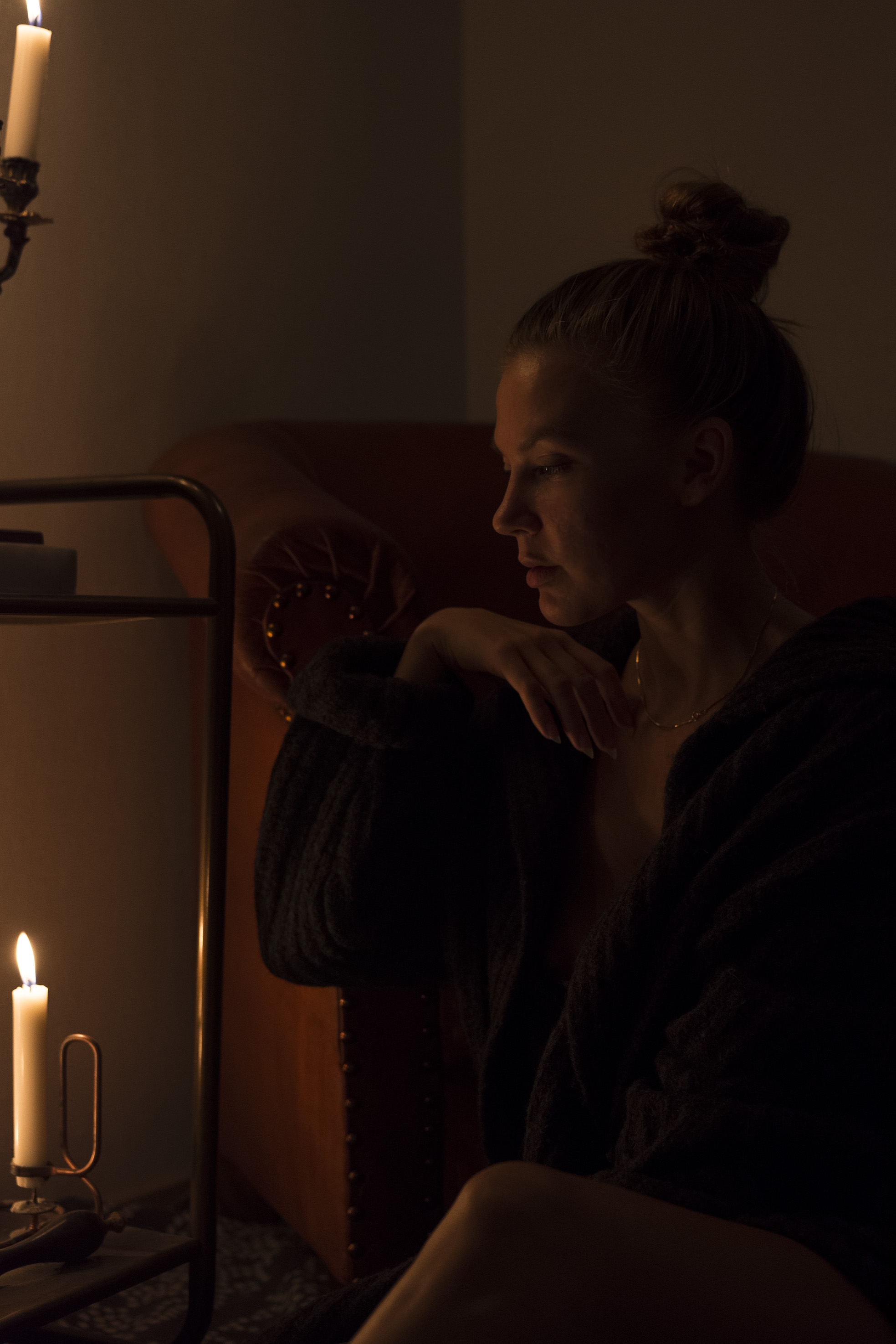 Autumn is here. It's time to lit up some candles and bundle up in a big comfy wool knit. Although it's not too cold yet, so one can hang out without pants, yay.