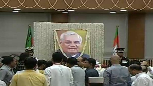 वाजपेयी का पार्थिव शरीर कृष्ण मेनन मार्ग स्थित उनके आवास पर रातभर रखा गया. सुबह 9 बजे उनका पार्थिव देह भाजपा मुख्यालय ले जाई गयी