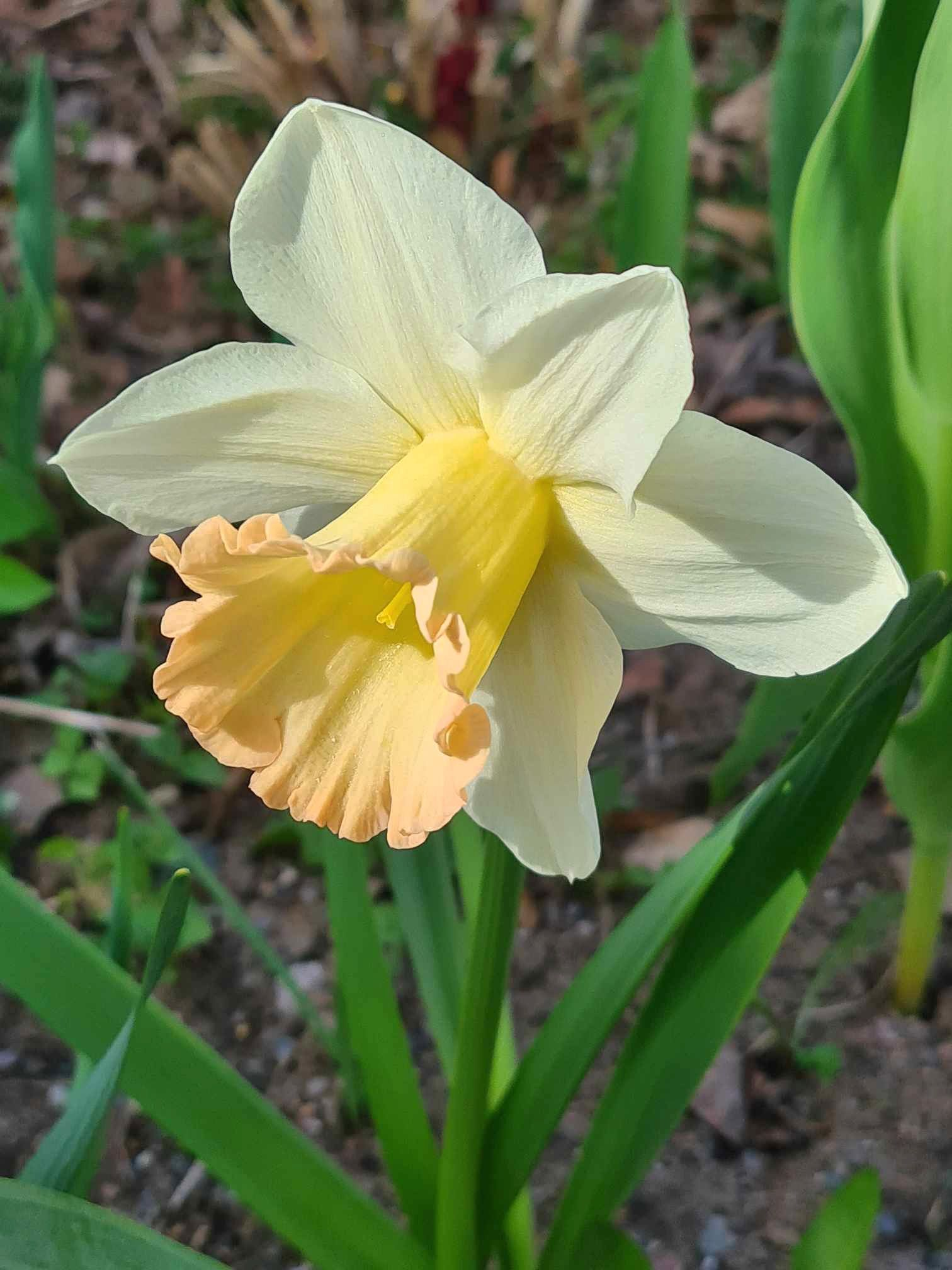 Surrounded by narrow, fresh leaves, it feels like a whisper of renewal and joy. Its presence is both simple and uplifting. The daffodil flower symbolizes new beginnings, hope, and the cheerful promise of brighter days ahead.