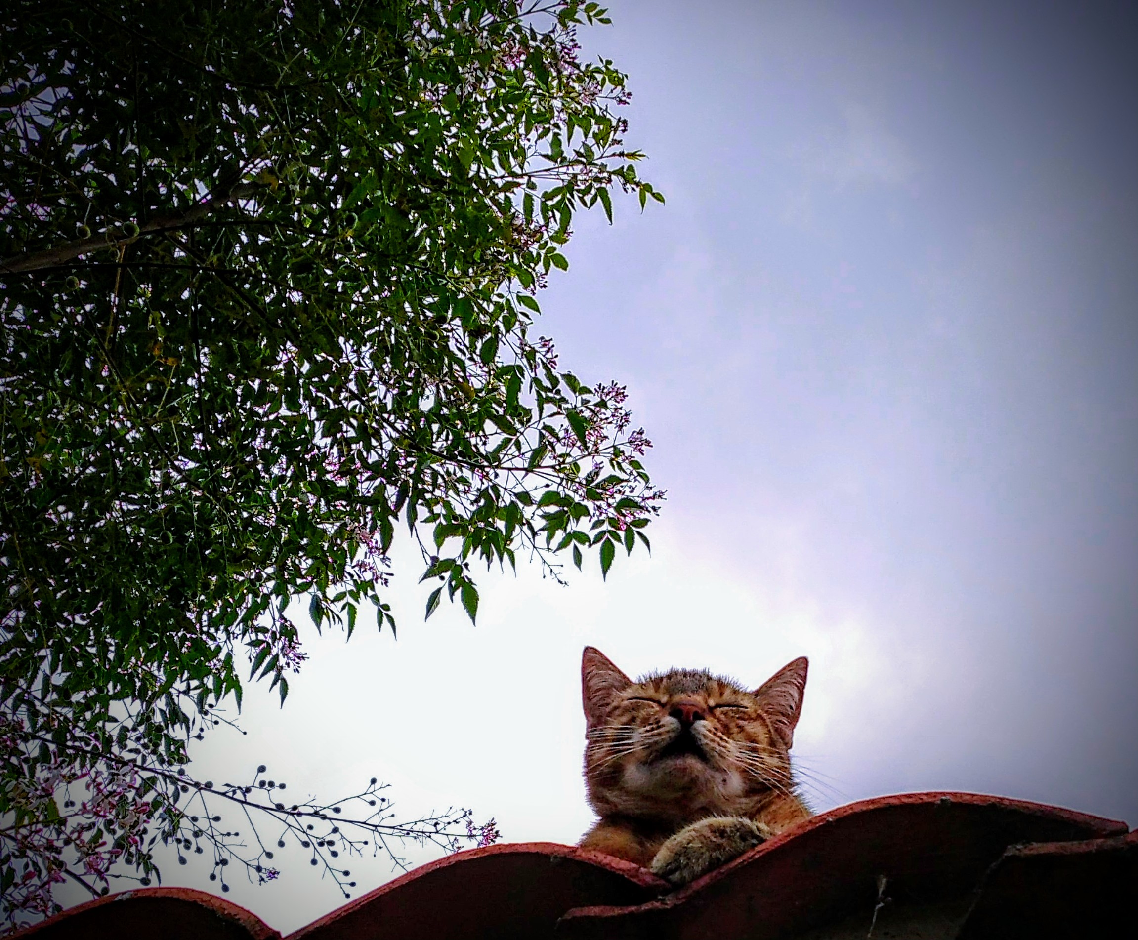 She usually goes up to the roof, even spending hours there and more when there is a prowler nearby. After a near-fatal encounter with a stray dog, it's no longer easy