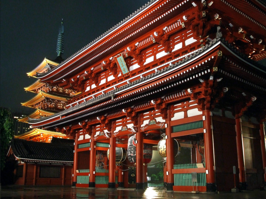 Asakusa's Sensoji complex is best seen at night. This is Hōzōmon the inner of two large entrance gates, the other one being Kaminari-mon. Hōzōmon was used to house treasure and precious scrolls.