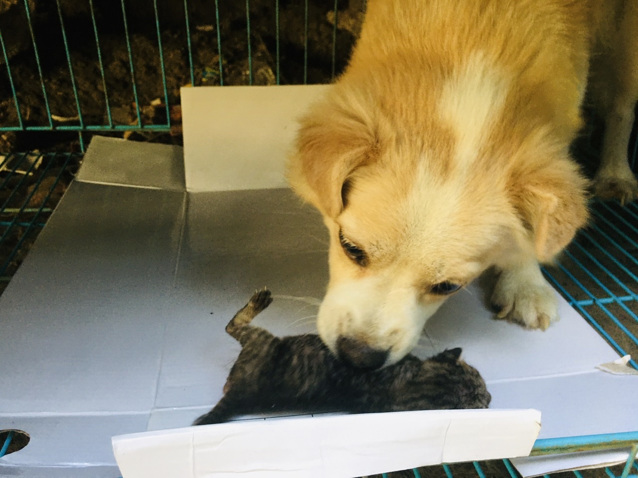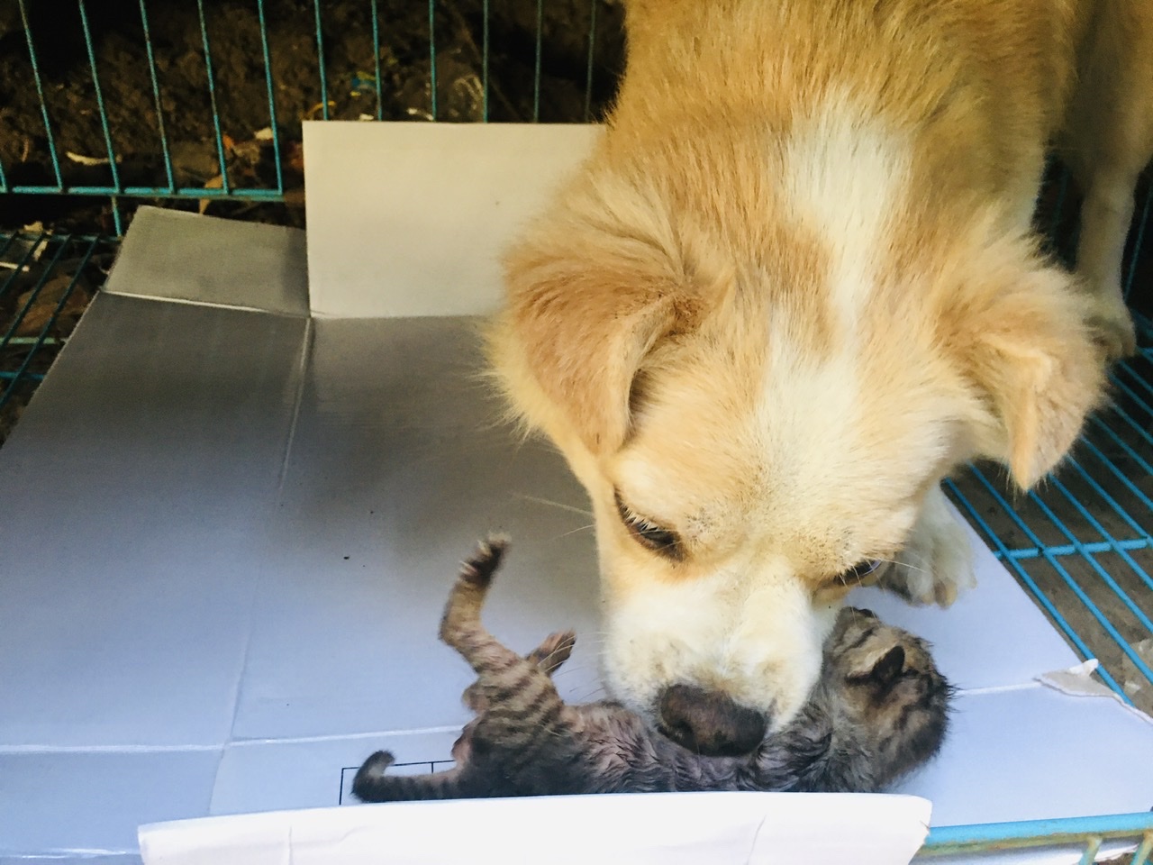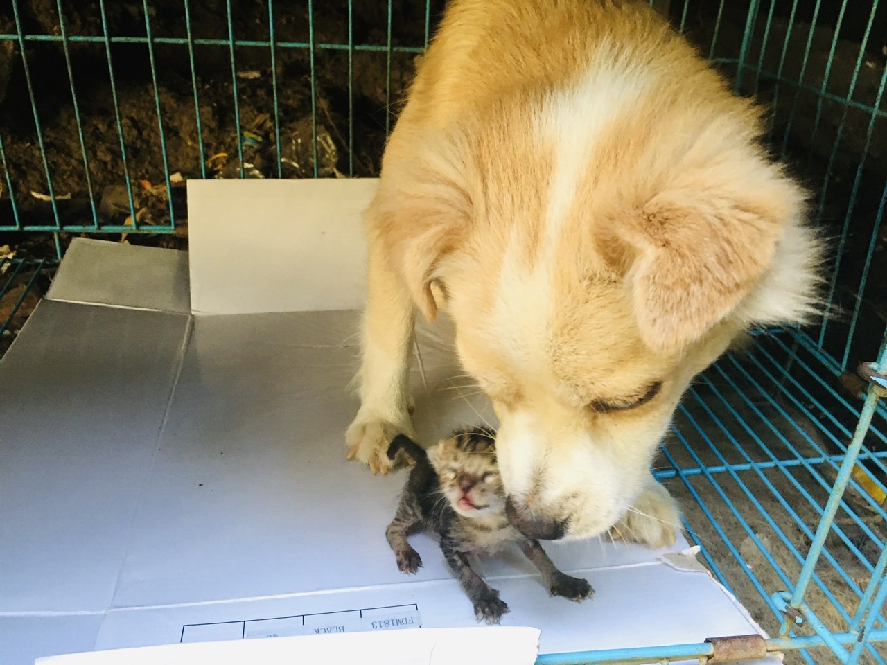 This is what we call a mother dog’s love. She chooses no race and kind. She felt it needs attention and he showed it unconditionally.
