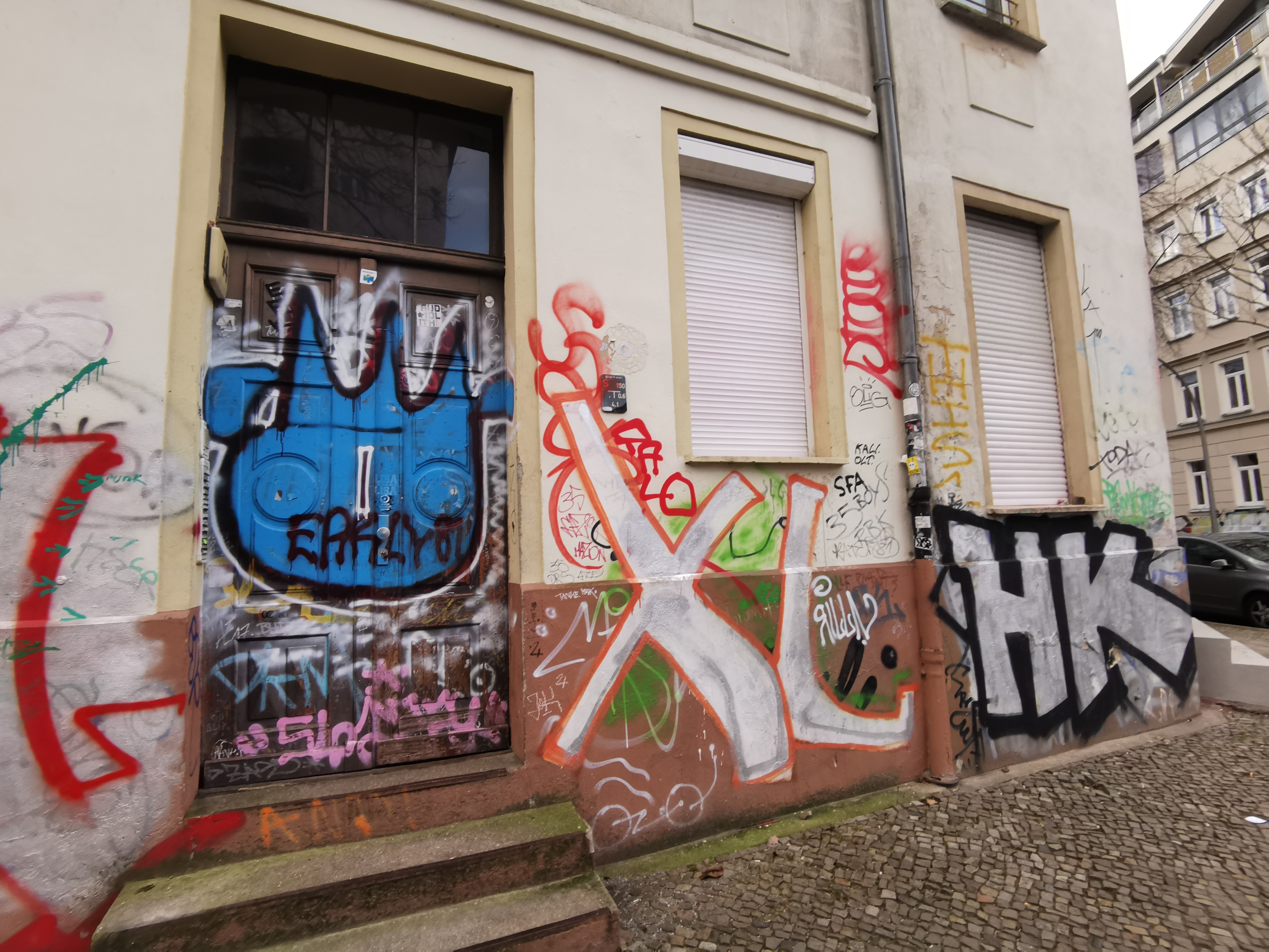 Almost every entrance and every house wall is graffitied, I don't suspect any serious spraying exercises behind it but a simple desire for recognition mixed with a dash of destructiveness.