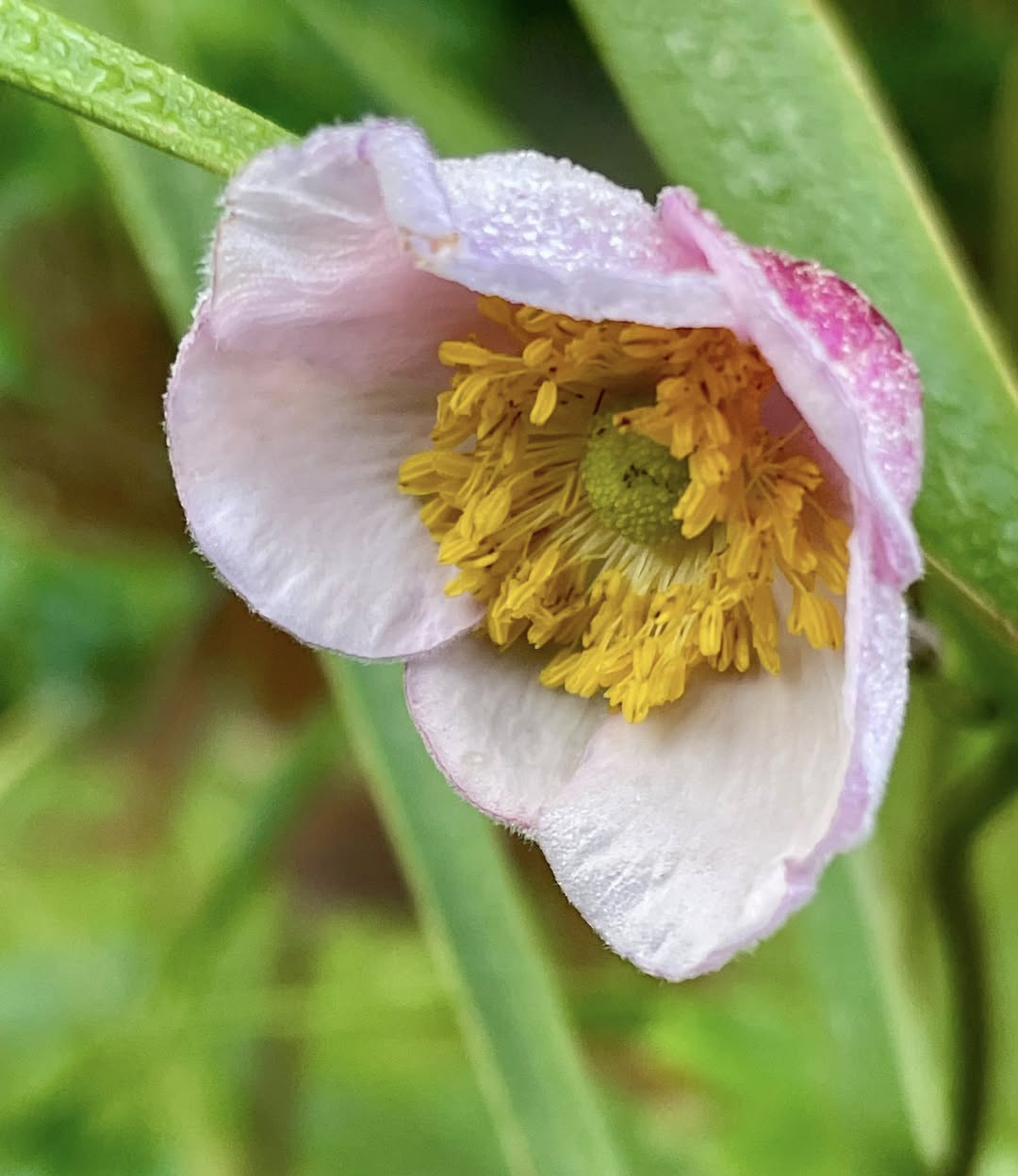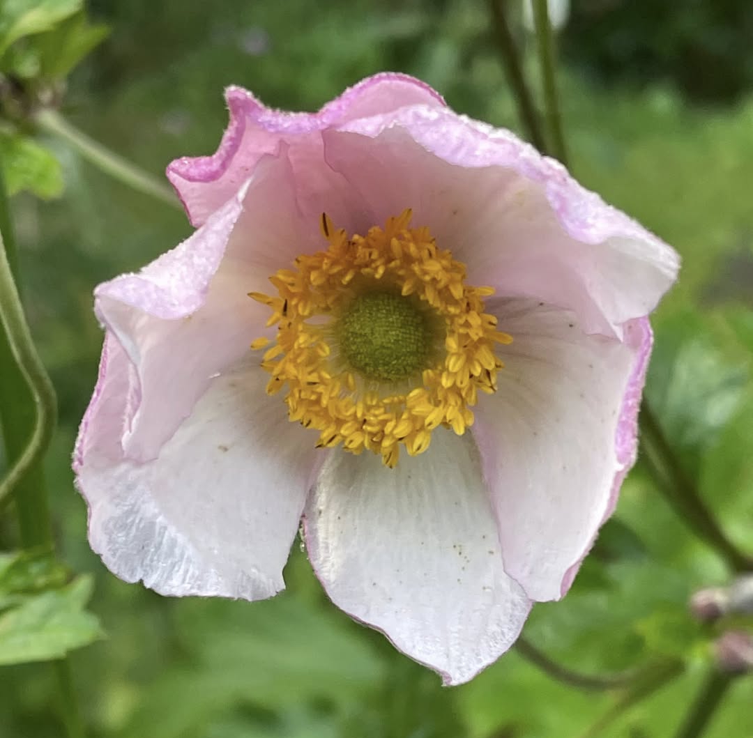 The flowers, which bloom from late summer into autumn, are its most captivating feature. They are usually white, pink, or lavender with a central ring of golden-yellow stamens surrounding a prominent greenish center, giving them a refined and eye-catching appearance. The petals, actually sepals, are simple and delicate, sometimes tinged with soft gradients of color that glow under the autumn light. Japanese thimbleweed thrives in partially shaded to full sun locations with well-drained, fertile soil that retains some moisture. It prefers a cool and temperate climate and can tolerate both shade and sunlight, making it versatile for borders, woodland gardens, and cottage-style plantings.