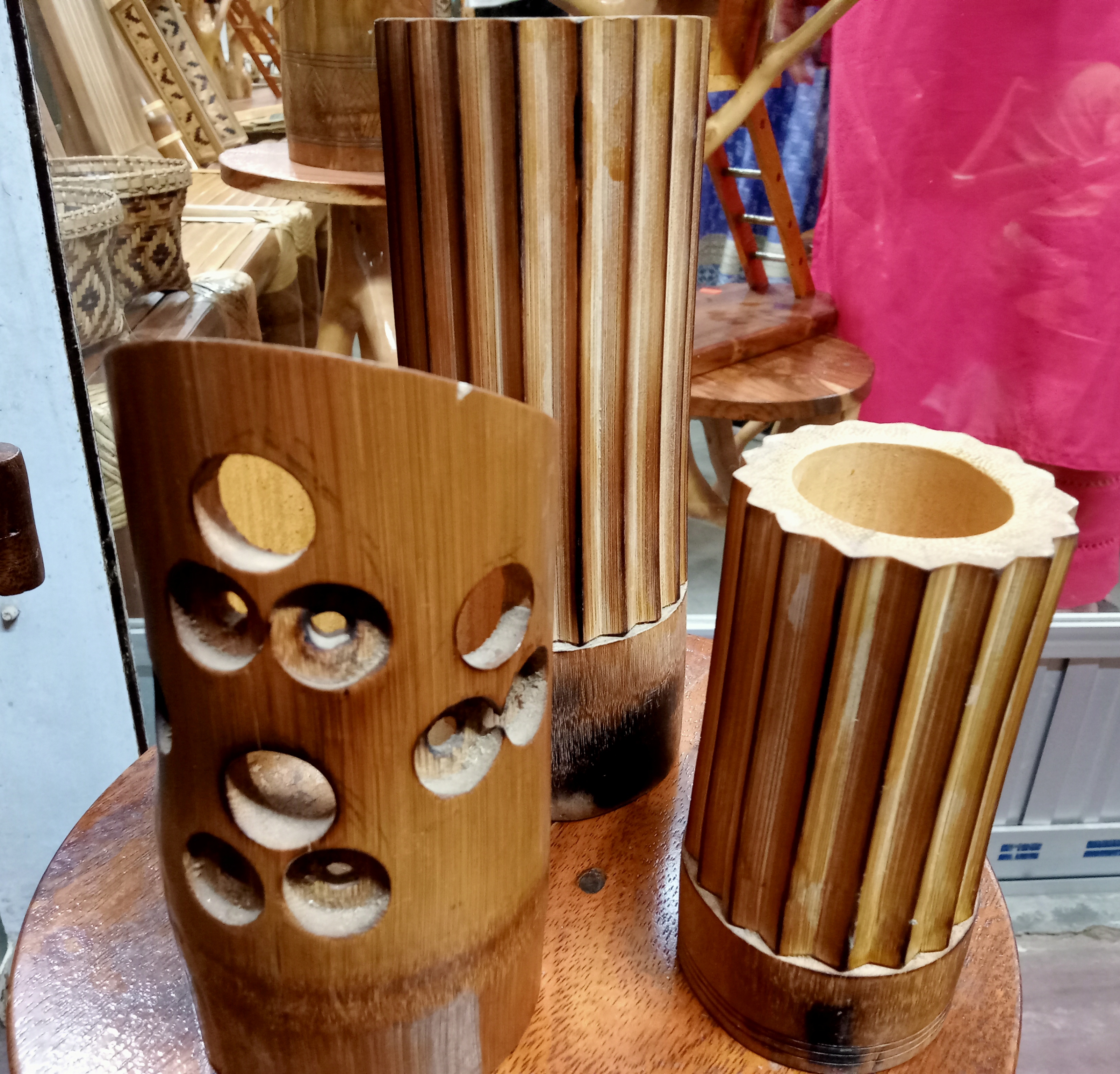 এখানে ছবিতে যেই বস্তুগুলো দেখা যাচ্ছে সবগুলো পেন হোল্ডার। এগুলোতে কলম বা ব্রাশ জাতীয় জিনিসগুলো রাখা যায়। আসলে আমরা বাসায় প্লাস্টিক বা স্টিলের হোল্ডার ব্যাবহার করে থাকি। এই ধরনের বাঁশের তৈরী হোল্ডার টেবিলে সাজিয়ে রাখলে দেখতে খুব সুন্দর লাগবে।
