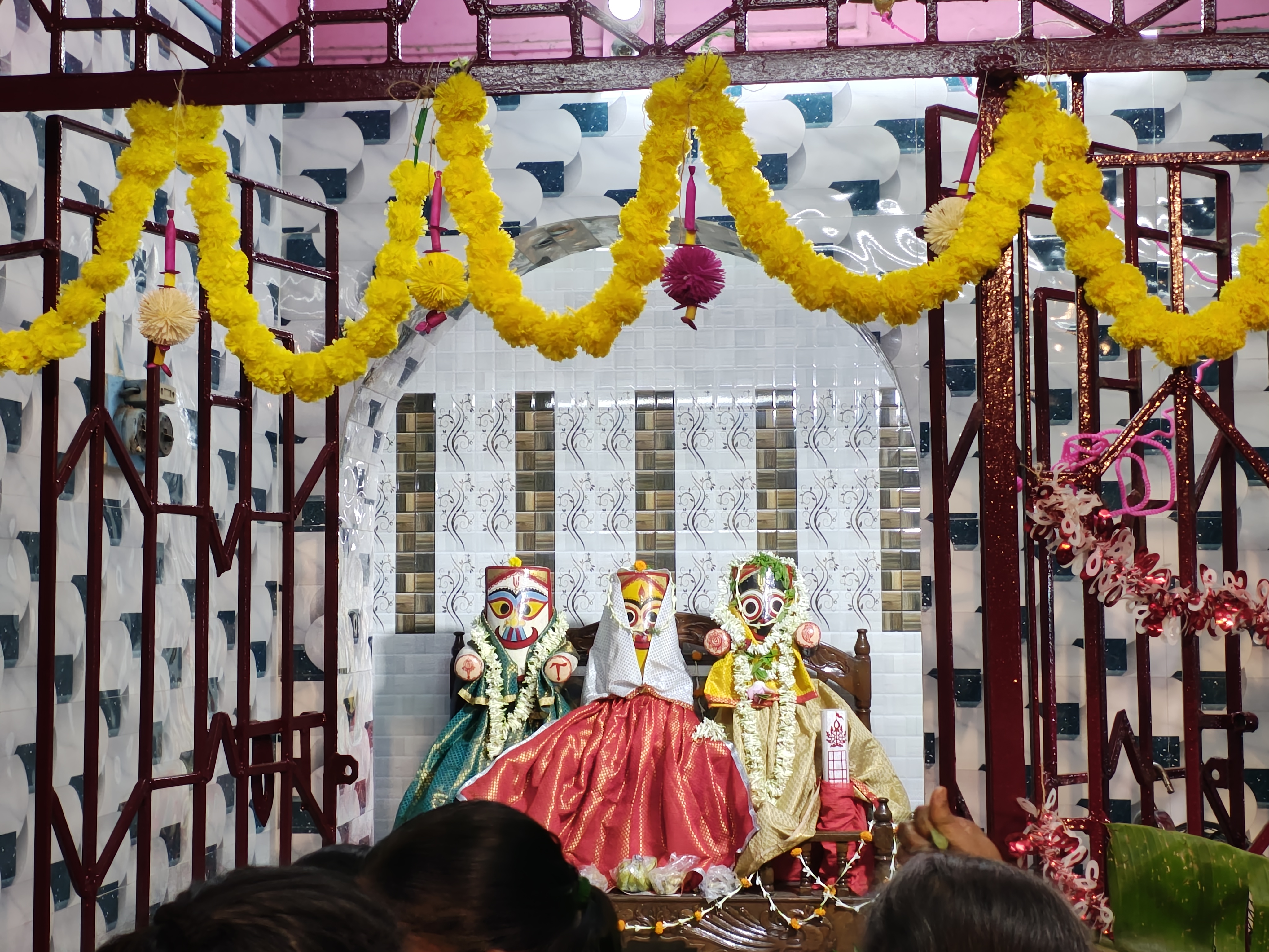 আসলে রাস্তাঘাট ভালো না থাকায় আমরা ব্যাটারিচালিত ভ্যানে করে সেই রথের মেলা দেখে গেলাম। যেহেতু এবছর আমি আর রথ টানতে পারিনি তাই সর্বপ্রথম সেই রথের কাছে গিয়ে প্রণাম করে দড়িটা ধরে হালকা একটু টান দেওয়ার চেষ্টা করলাম। যাইহোক দুধের স্বাদ ঘোলে মেটানোর চেষ্টা করলাম। আর এরপর পাশের মন্দিরে জগন্নাথ দেবের মূর্তি দেখে সেখানে ভক্তিভরে প্রণাম করলাম। যেহেতু এই মন্দিরের সামনে প্রচুর লোক এসে ভিড় জমিয়েছে তাই আমি সেই মন্দিরের সামনে আর বেশিক্ষণ অপেক্ষা করতে পারলাম না। কারন আমার মত সবাই এসে মন্দিরের সামনে প্রণাম করছে এবং জগন্নাথ দেবের চরণধূলি নিচ্ছেন। তাই আমি কিছুক্ষণ ওখানে দাঁড়িয়ে পুনরায় সাইডে সরে এসে জগন্নাথ দেবের মূর্তিটি দেখতে লাগলাম।