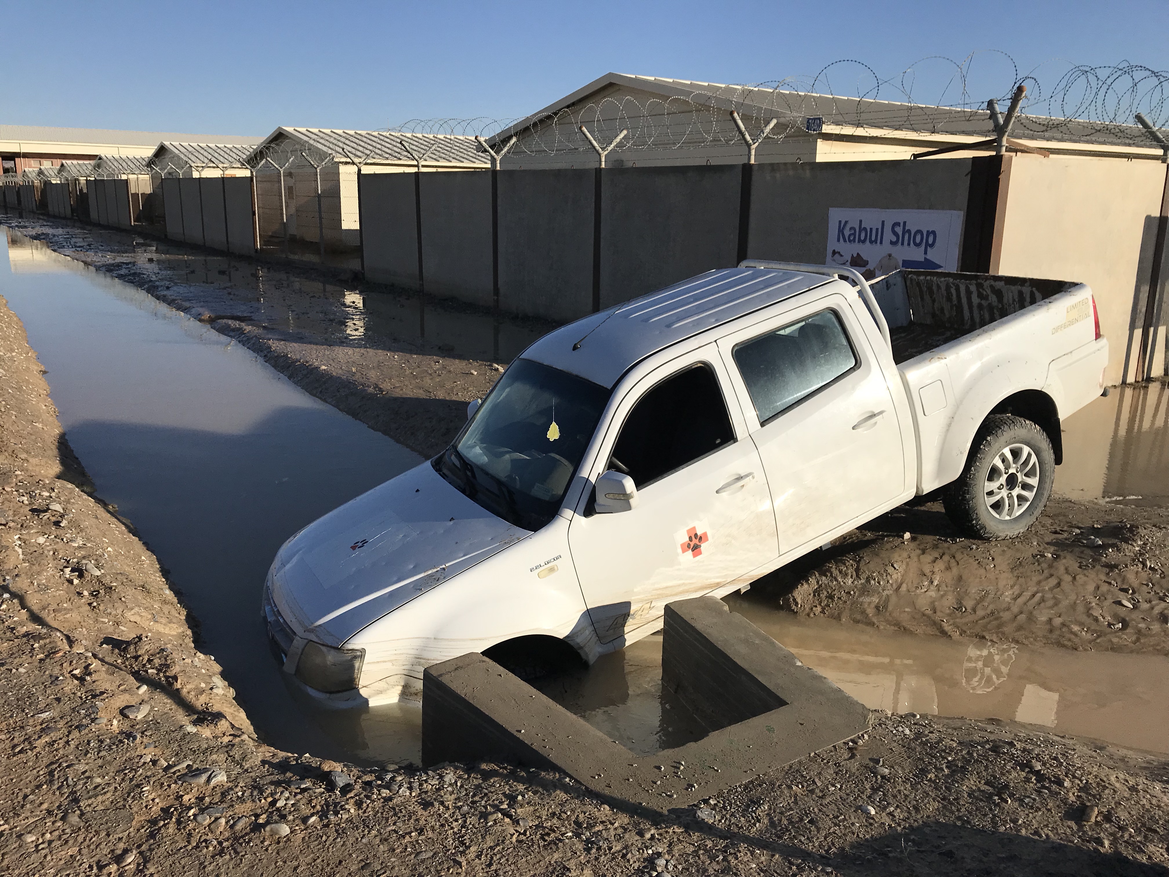 This guy had a bad day. In his defense, it was flooding everywhere, but you'd think he'd have a clue with the stop sign where it is. Pro-tip, don't drive off road from a stop sign in a flood. The horn on it blew for almost 24 hours. It got pretty sad toward the end.