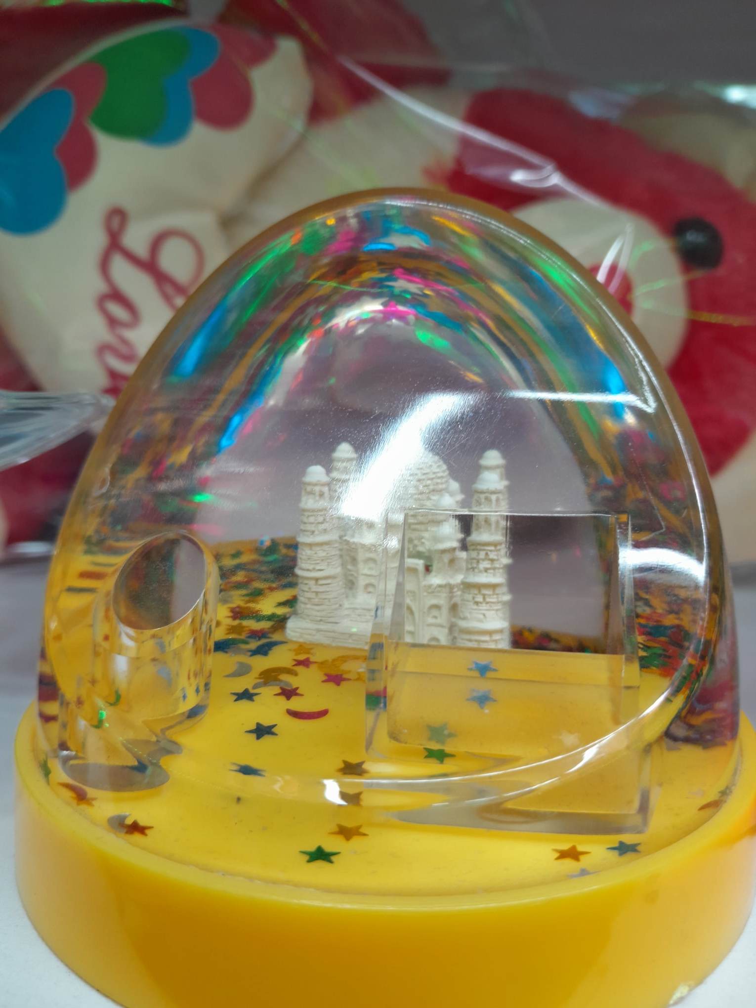 আরেক রকম শোপিস। ওভেল আকৃতির। উপরটা কাঁচের ভিতরে খুব সম্ভবত তাজমহল ।