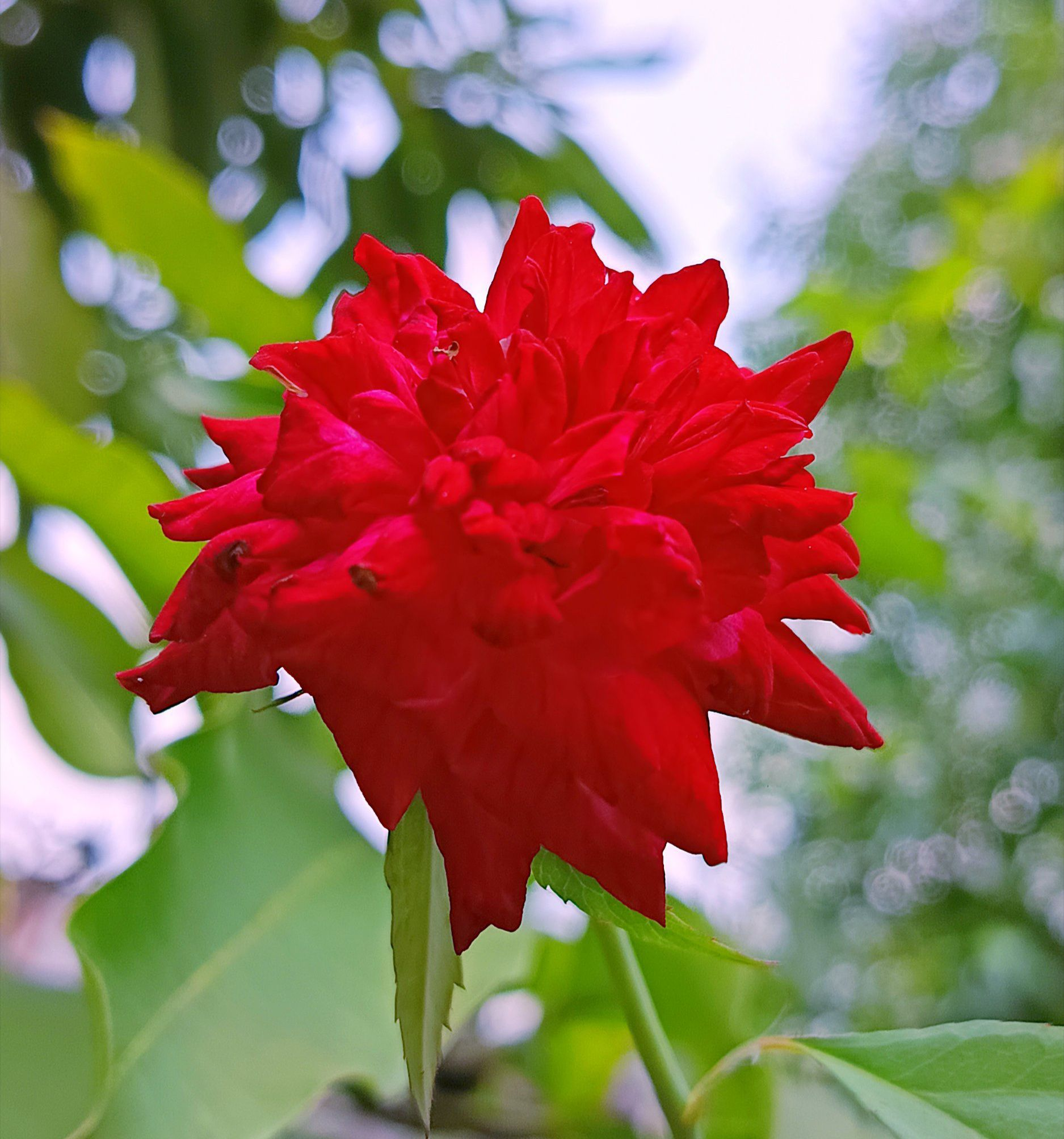The structure is both bold and precise, creating a sense of strength wrapped in elegance. Set against sturdy stems and deep green leaves, it stands with confident grace. There is a powerful warmth in its presence. The red dahlia symbolizes passion, strength, and the enduring beauty of a bold and fearless heart.