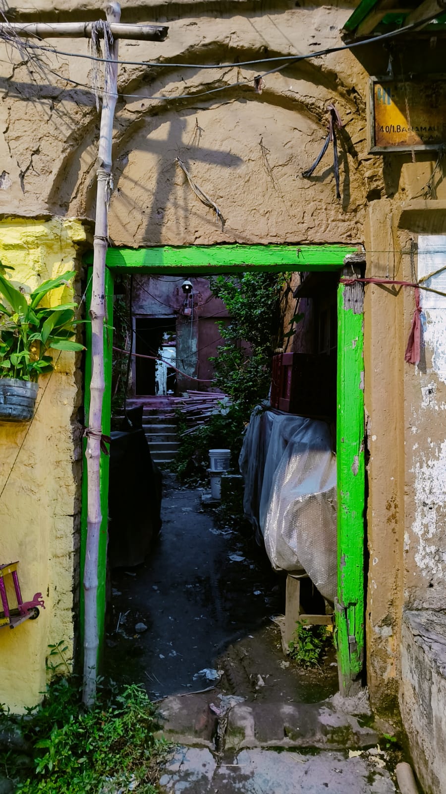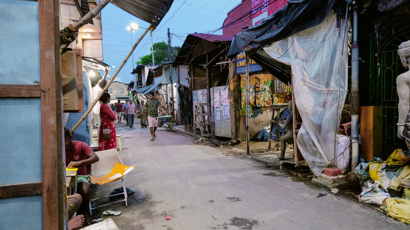পুরোনো কলকাতার রূপ । রাস্তার দু'ধারে জরাজীর্ণ শতাব্দী প্রাচীন সব বাড়ি এখন কুমোরপাড়ার কুমোরদের মৃৎশিল্পের ষ্টুডিও ।