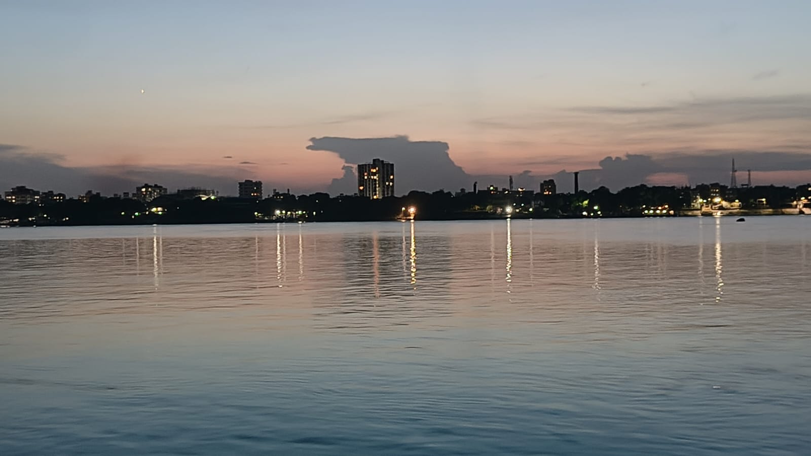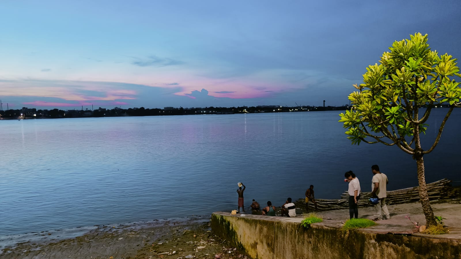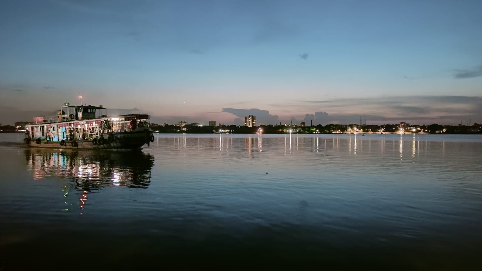 অবশেষে তীরে ভিড়লো তরী । আমরা এখন বাগবাজারের গঙ্গার ঘাটে বসে গঙ্গার বুকে সন্ধ্যার প্রকৃতির রূপ আস্বাদনে বিভোর ।