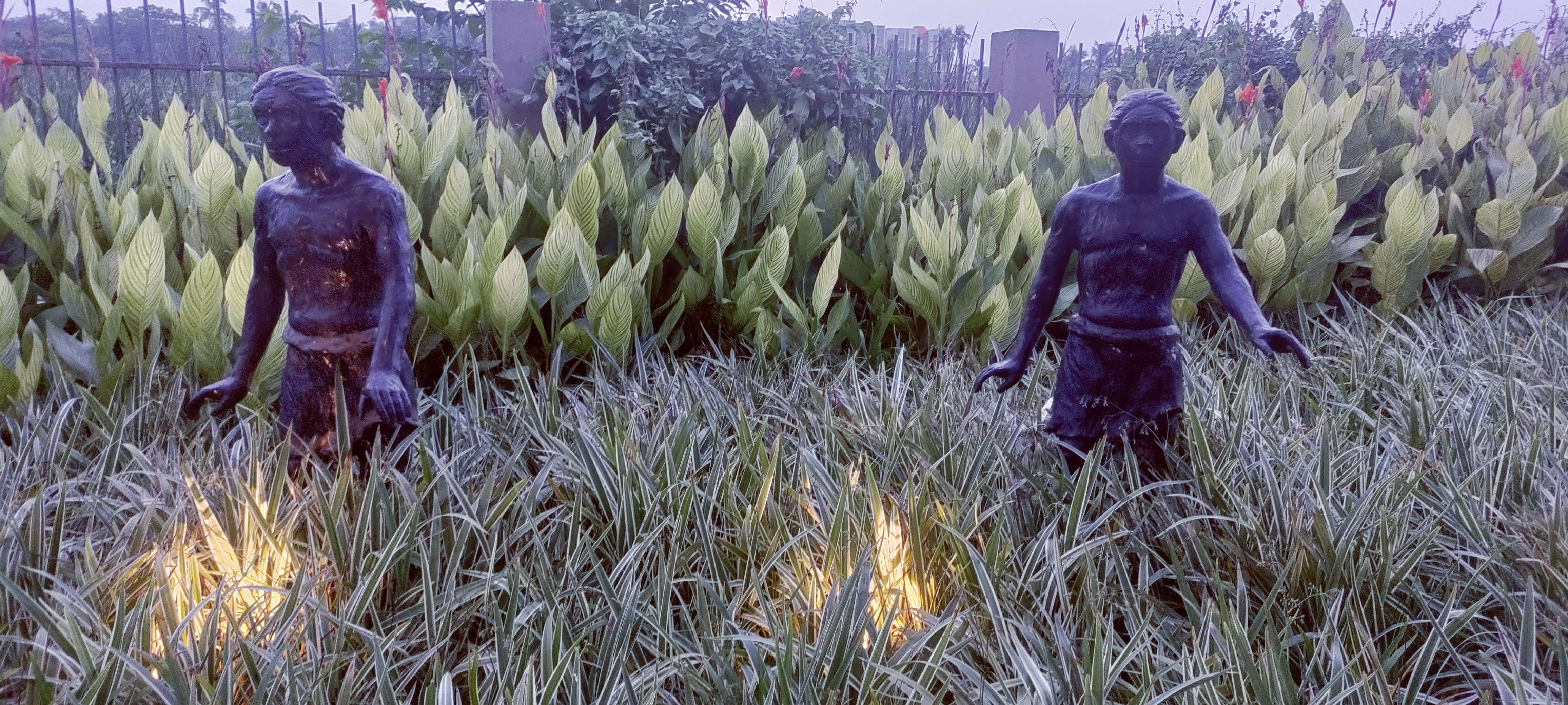 এই লিলির ঝোপের মধ্যে ছড়িয়ে ছিটিয়ে রয়েছে বেশ কিছু আদিম মানুষের মূর্তি । সত্যজিতের সেই বিখ্যাত মানুষের বিবর্তন নিয়ে লেখা কল্পবিজ্ঞান "প্রোফেসর শঙ্কু ও আদিম মানুষ" অবলম্বনে এই মূর্তি গুলো তৈরী করা হয়েছে ।