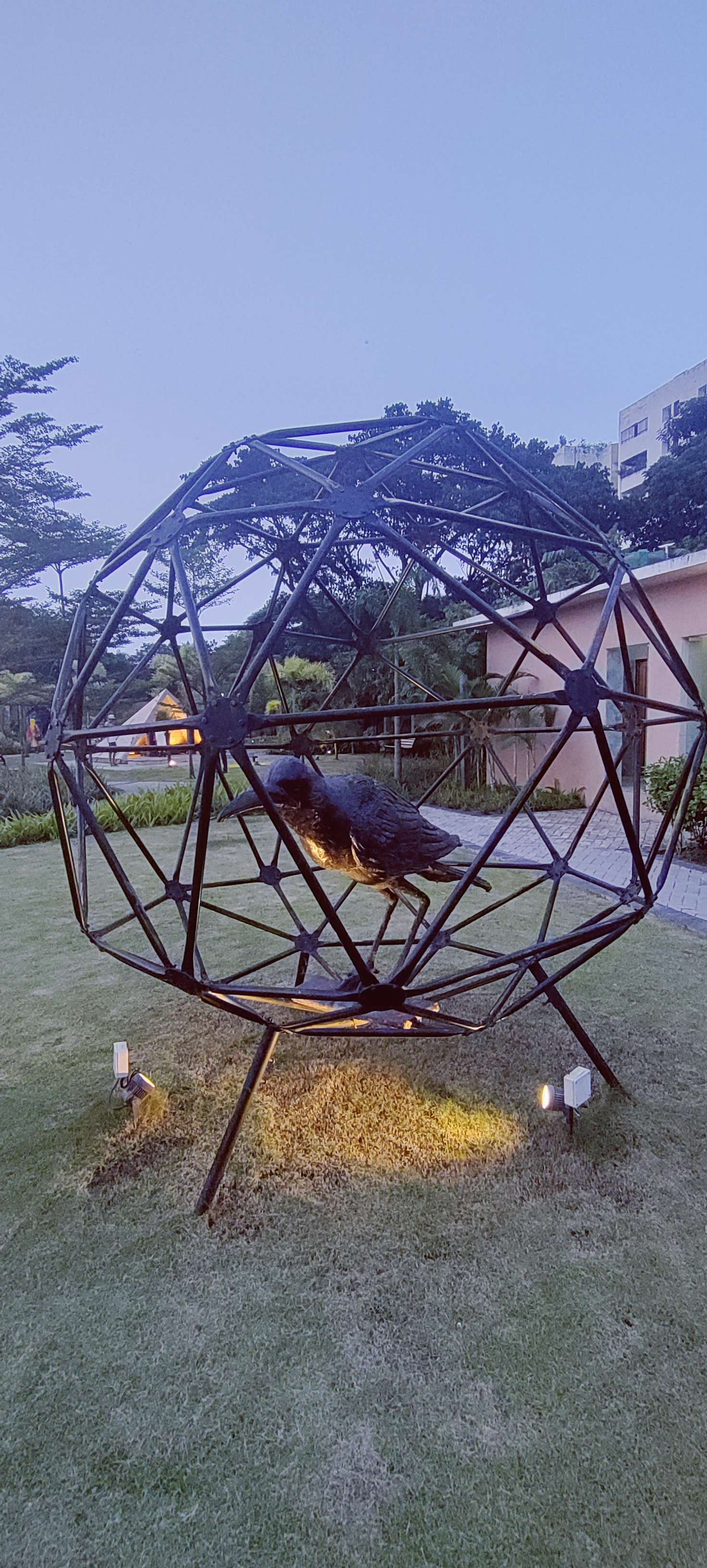একটি প্রকান্ড লোহার খাঁচার মধ্যে পাথরের তৈরী প্রকান্ড একটি কাকের মূর্তি রয়েছে পার্কের ঘাসে ঢাকা মাঠটার ঠিক মাঝখানে । আর সামান্য একটু এগিয়ে পশ্চিমদিকে অনেকটা জায়গা জুড়ে রয়েছে তাসমানিয়ান ফ্লাক্স লিলি বা screw pine এর ঝাড় । আর একদিকে রয়েছে Bengal Tiger Canna Lily । দারুন দেখতে এই লিলিগুলো ।