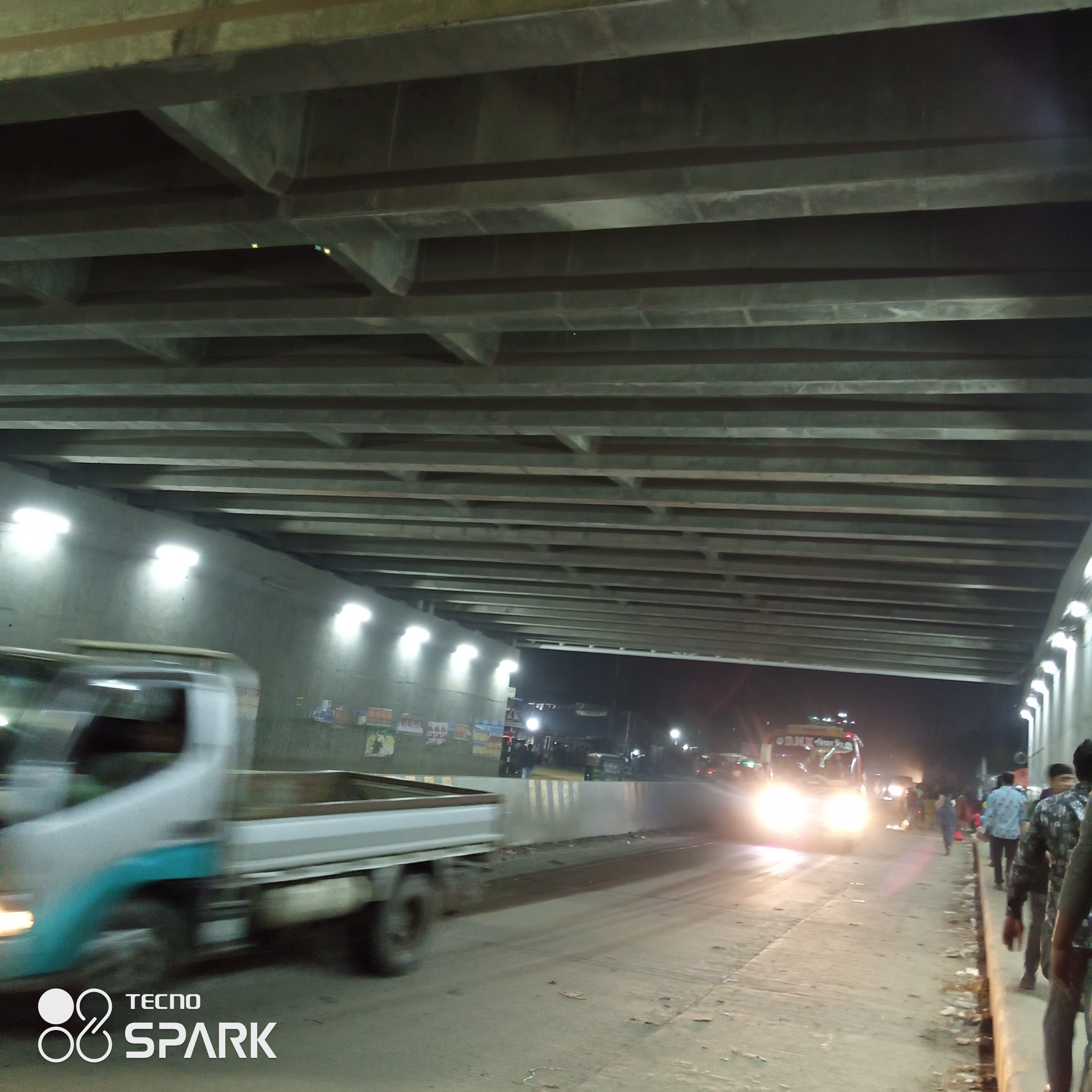 জুরাইন পোস্তগোলা ব্রীজের নিচে হাঁটার মুহূর্ত একটা ফটোগ্রাফি নিলাম। রাত্রে রংবেরঙের বাতির আলোয় ব্রিজের নিচে জায়গাটি বেশ আকর্ষণীয় লাগছিল তাই একটা ছবি নিলাম।